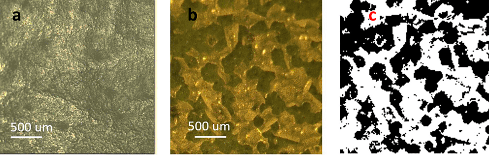 Figure depicts three different levels of laser energy-intensity. a) 0.3 J/cm2, b) 0.5 J/cm2, c) 0.76 J/cm2.