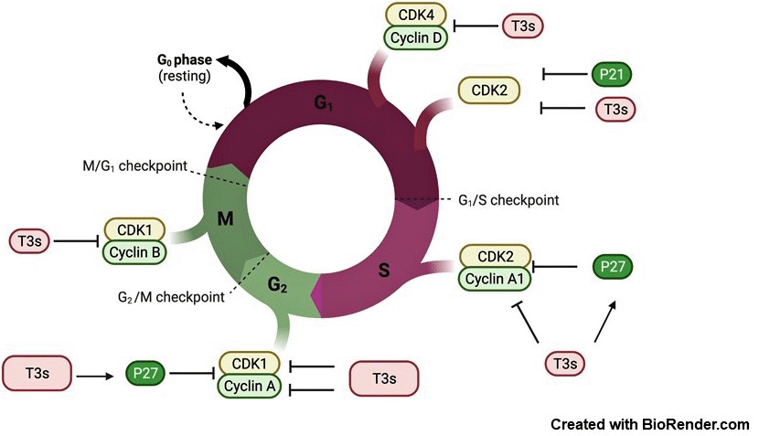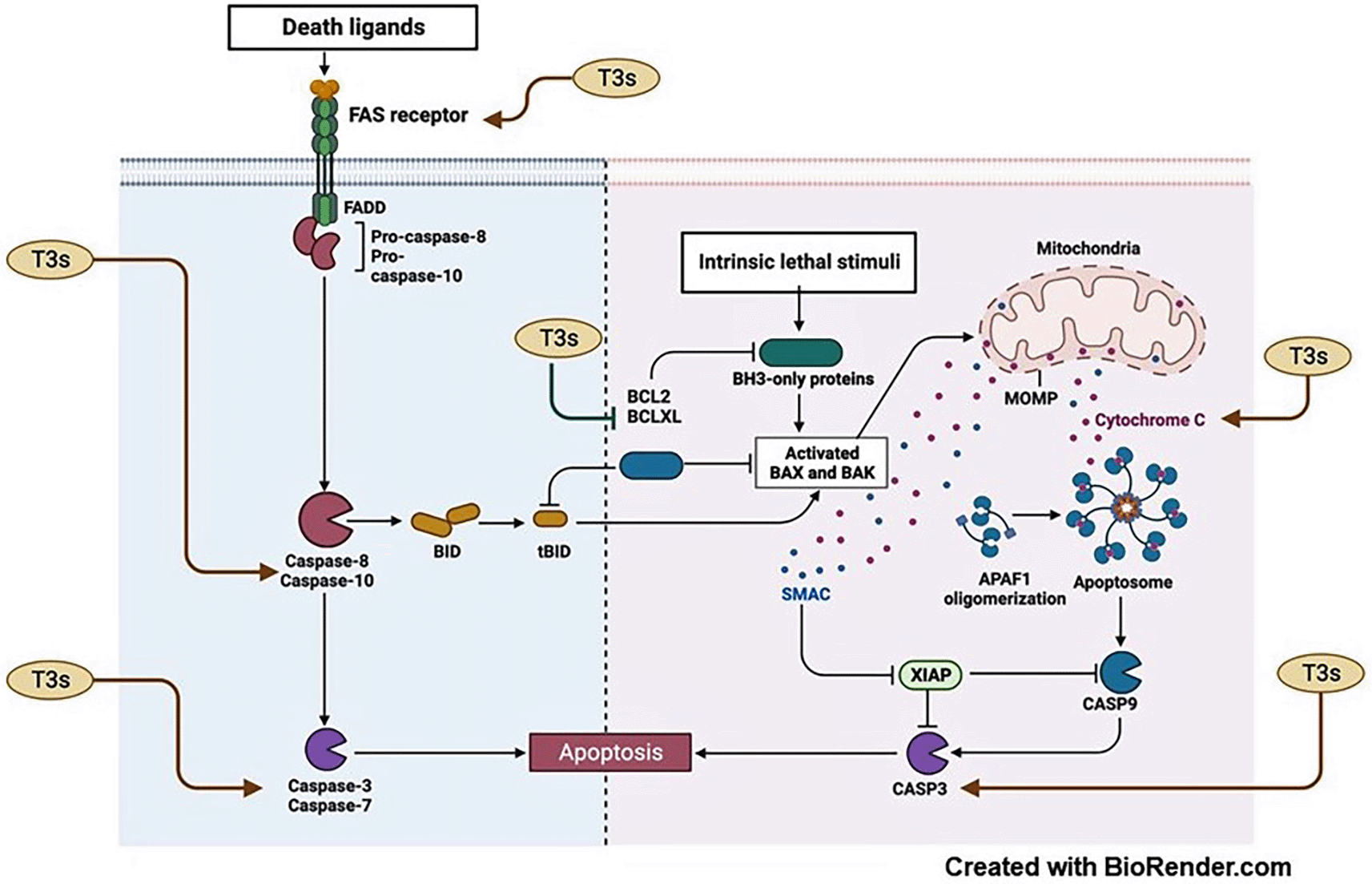 As reported by the reviewed studies, T3 regulate several underlying cancer cell death mechanisms in different cancer cell lines. Such as a cell cycle regulator and apoptosis inducers. Further targeted studies are required to map the definite pathways by which T3 exerts their action. The reported potent antineoplastic effects in cell culture-based studies and animal studies invite extensive examination of the common mechanism by which T3 exert their action in order for this promising natural compound clinical use.