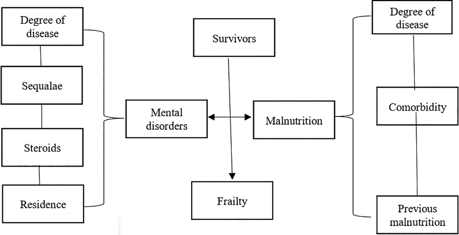 The risk of mental disorders and malnutrition in elderly COVID-19 survivors can lead to fragility. The fragility of elderly COVID-19 survivors increases hospitalization rates and mortality (Figure 1).17,21–25