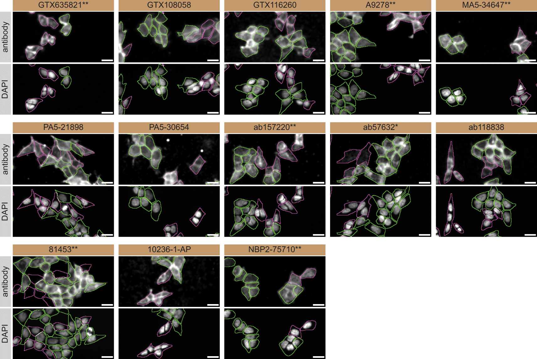 We would like to thank the NeuroSGC/YCharOS/EDDU collaborative group for their important contribution to the creation of an open scientific ecosystem of antibody manufacturers and knockout cell line suppliers, for the development of community-agreed protocols, and for their shared ideas, resources and collaboration. We would also like to thank the Advanced BioImaging Facility (ABIF) consortium for their image analysis pipeline development and conduction (RRID:SCR_017697). Members of each group can be found below.