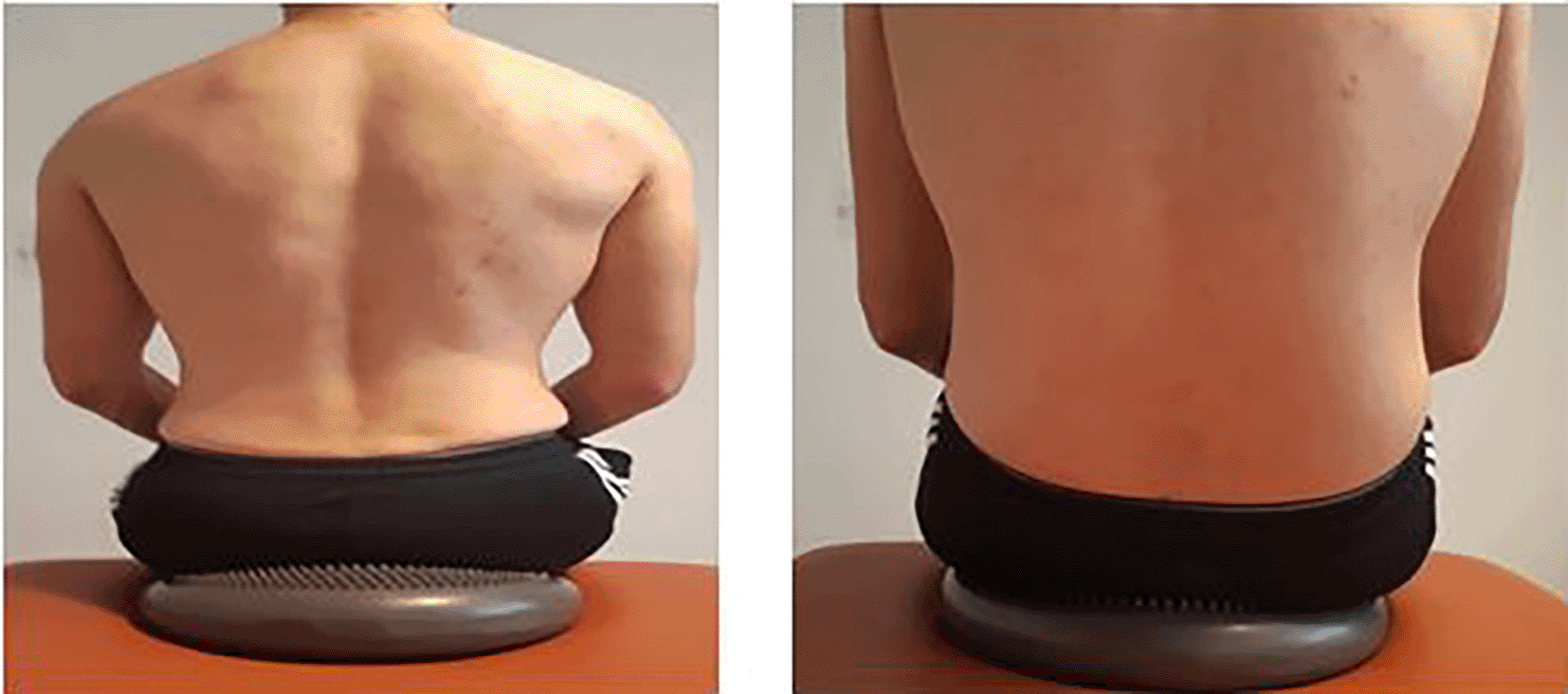 The duration of the exercises was approximately 10 minutes altogether. They should be performed several times a day. Subjects who had been in a sitting position at work for a long time were advised to use a balance cushion there as well. The duration of the study period was one month, during which patients strictly performed the exercises at home and once a week we applied manual manipulative techniques on our part.