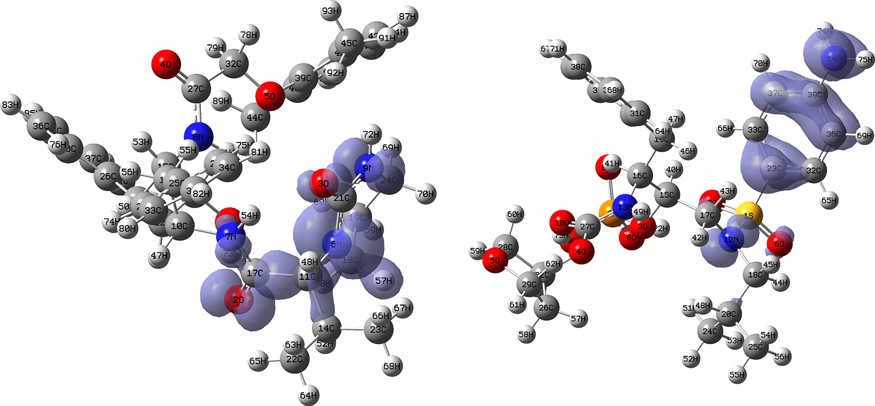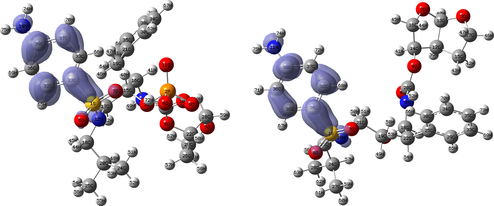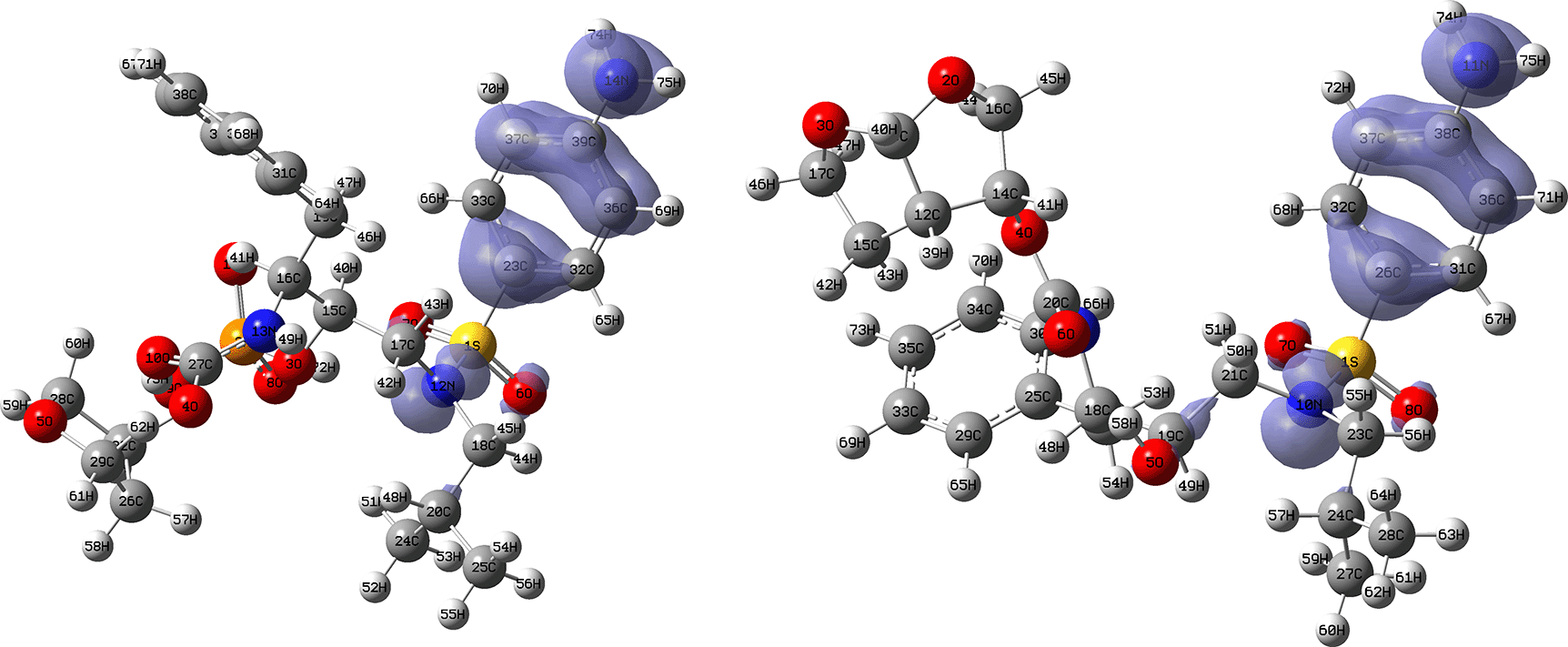Isovalue: 0.002 in both cases. Figure created using Schrödinger suite 2017-1.