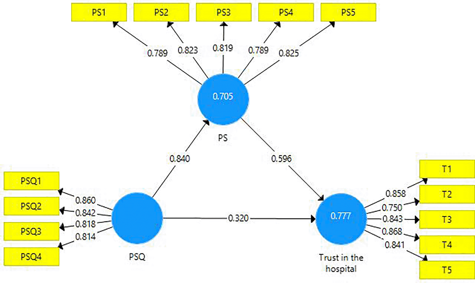 H3: The link between PSQ and trust in the hospital is mediated by PS.