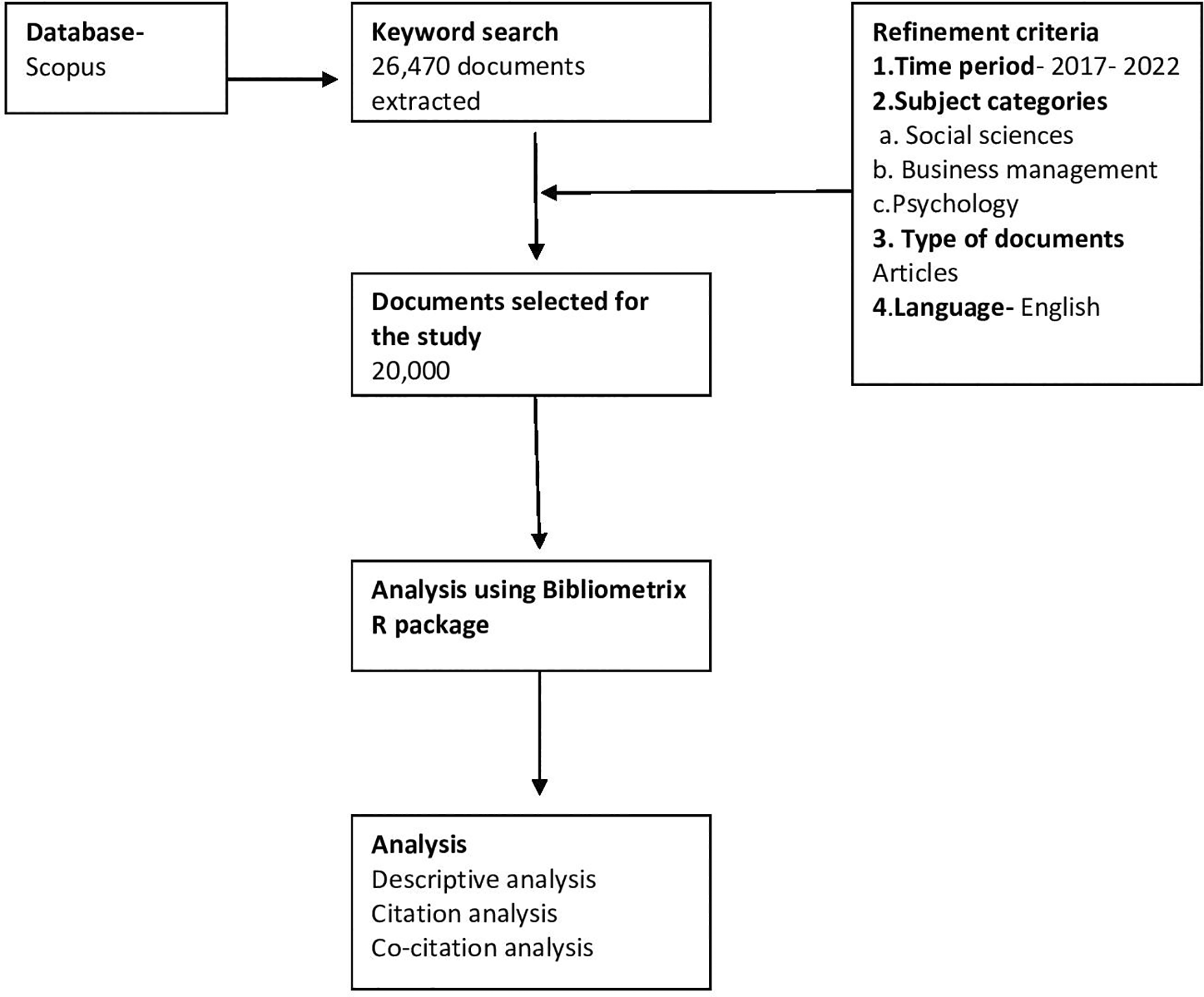 Three subjects were used in the refined search category:“Psychology”, “Business management”, and “Social science”. At this stage, 26,470 were extracted.