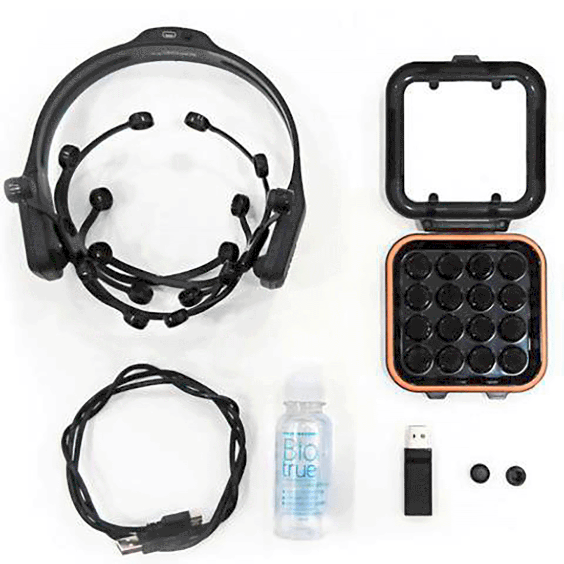 The subject brain’s signals were gathered through EEG records from the scalp using the Emotiv EPOC+. The Emotiv EPOC+ is a low-cost, portable, and easy-to-configure device (Figure 1), that can be used without a conductive gel: instead of this, the electrodes may be moistened in saline water. Emotiv EPOC+ has wireless connectivity, 14 channels for signal collection (AF3, F7, F3, FC5, T7, P7, O1, O2, P8, T8, FC6, F4, F8, AF4) and 128hz or 256Hz sampling frequency. It is usually sold with a software Control Panel (CP) (Figure 2) and with a software development kit (SDK). Emotiv EPOC+ probably is not as robust as healthcare EEG equipment, however, due to its advantages, it was also used in other research.16–18