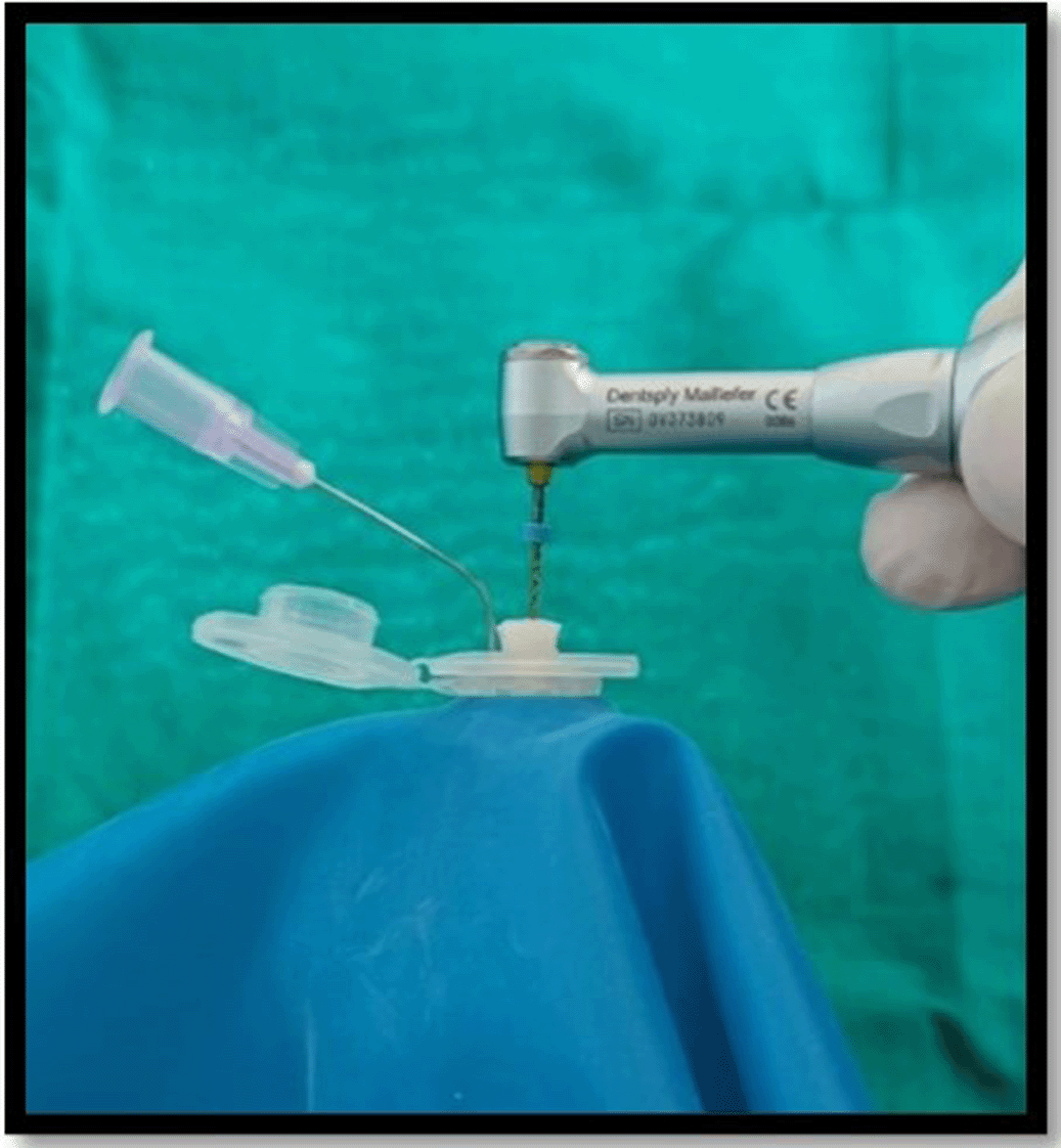 Irrespective of the instrumentation system, 1 mL distilled water with a 30-gauge side vented needle was used for irrigating the canals following each instrument. The irrigation was supposed to be passive irrigation as much as possible. Total irrigant used was 8 mL.