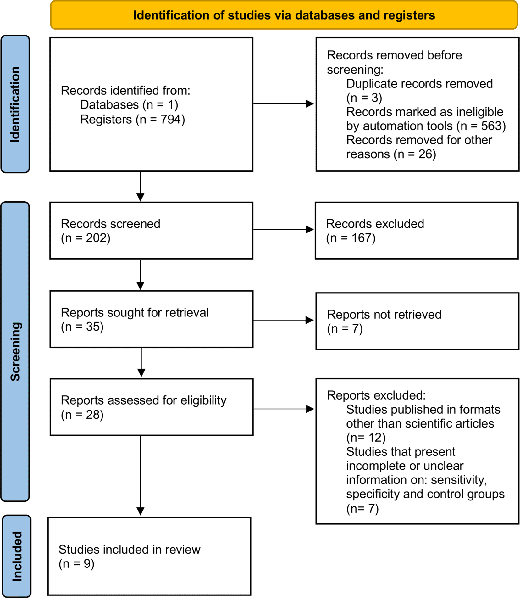 The studies included in the systematic review were selected in three stages. First, duplicate articles, original articles other than the English language, critical and systematic reviews, meta-analyses, and publications other than an original article were excluded: letters to the editor, commentary, editorial and case reports, data studies, news, conference, and directory; all these classifications were considered using the PubMed filters.27–29 Secondly, the titles and abstracts of the studies selected using the search strategy were analyzed. Finally, complete papers that might be relevant were located and separated from journals whose titles or abstracts lacked the pertinent information to be taken into account in the systematic review. The included studies were those that were published in journals of quartile one or two, had first authors and/or corresponding authors with Peruvian institutional affiliations, and/or had Peruvian funding. The research topics for these studies had to produce new scientific knowledge, development, innovation, and/or adaptation of new or improved low-cost technologies, products, mechanisms, or services.30,31