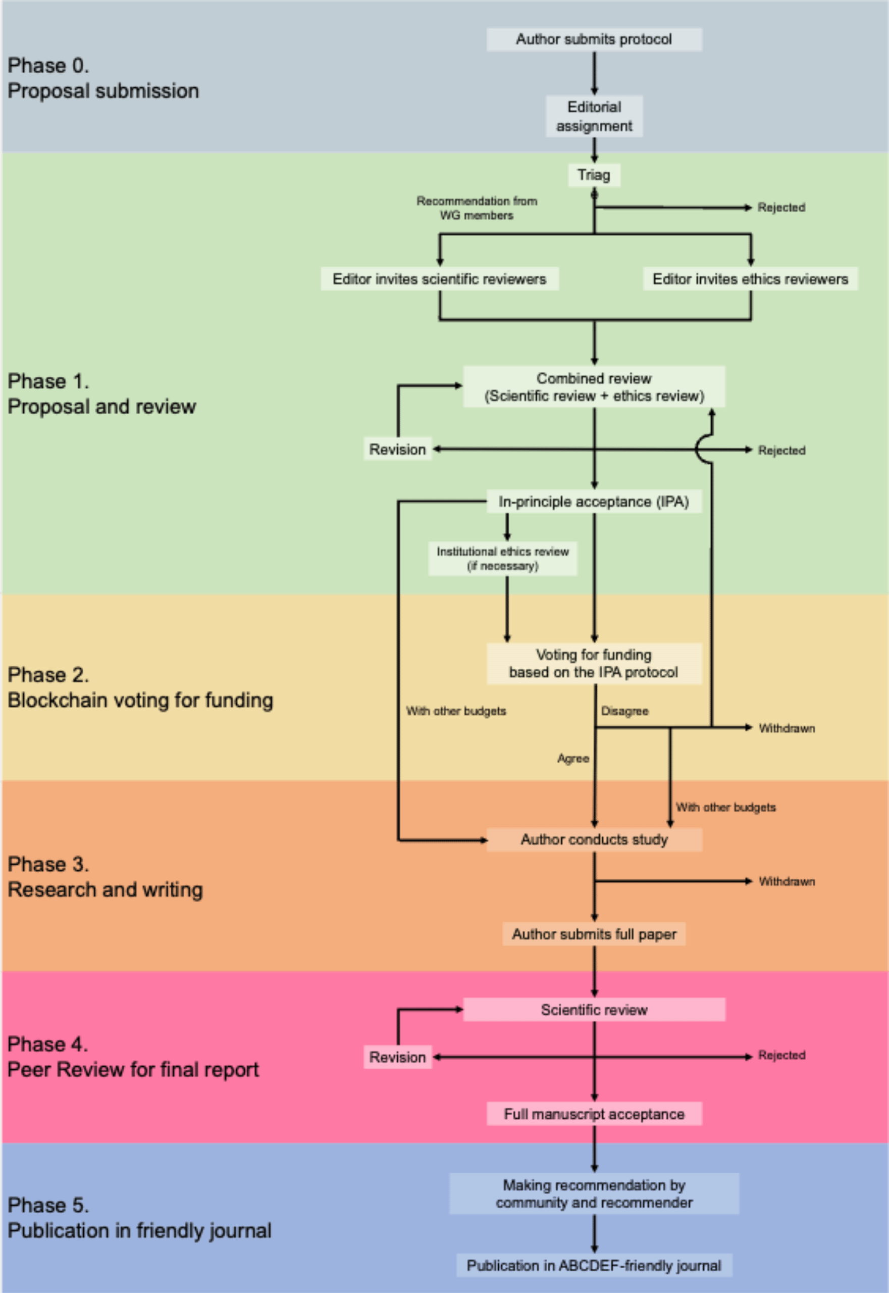 Current scientific endeavors have become complicated and protracted. Science advances by sifting through numerous findings made by many individuals and organizations. However, the current ecosystem of science suffers from various problems. First, researchers spend great amounts of time writing grant proposals to obtain research funding rather than conducting scientific investigations (Herbert et al. 2013). Funding decisions rely heavily on citation metrics, such as researcher h-indexes.1,2 Second, it is now standard for human and animal research to undergo ethics reviews before being initiated. However, these reviews are usually carried out behind closed doors by ethics committees composed of members selected by each institution.3 Additionally, such reviews are often ill-suited to evaluate research methods because the committees do not include experts in pertinent fields.4 Moreover, approved proposals must often be revised due to unforeseen changes in experimental methodology, necessitating reassessment by post hoc peer review.5 Accordingly, much research effort is wasted. Third, infrastructure to support reproducibility and transparency has not yet been fully developed,6–8 although there are a plethora of efforts to advance open science, such as open access, open data/material/code, open review reports, open peer review, pre-registration, and registered reports systems. Finally, there is excessive centralization of authority,9,10 and funding is often concentrated on limited numbers of scientists and publishers.11,12