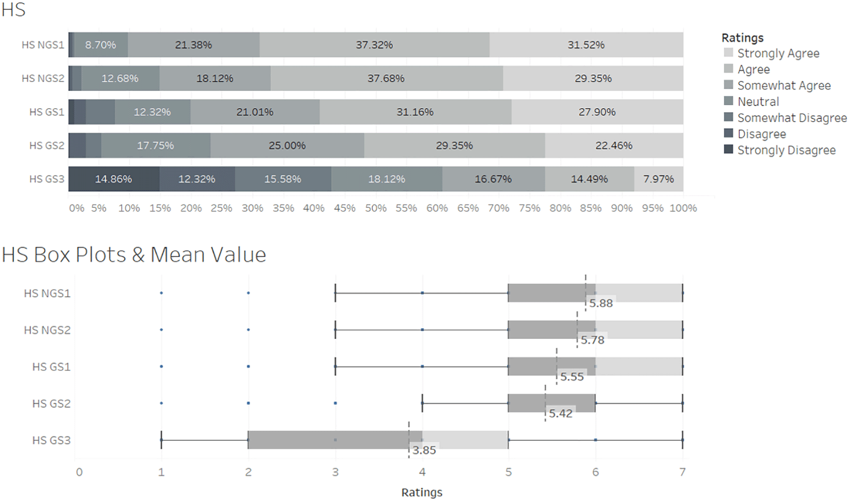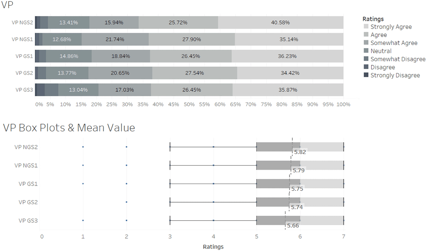 The question asks whether the message delivered by the spokespersons makes the respondents willing to be vaccinated (i.e. Vaccination Promotion). While there are some differences among the means, the differences do not seem to be significant. However, the second spokesperson (non-governmental, medical, doctor) as shown in Figure 3 is shown to induce more people who strongly agree that the person makes them willing to be vaccinated (40.58%). Again, the governmental, non-medical, spokesperson (GS3) is shown to have the lowest means, indicating that the person is less able (compared to the others) to make the respondents willing to be vaccinated.