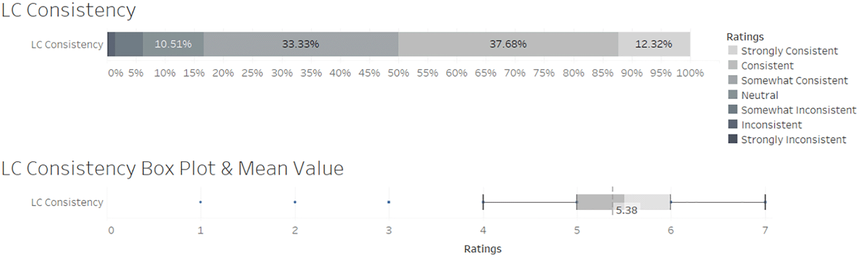 Regarding how consistent the spokespersons of their choice providing information regarding OMICRON (Figure 8) in particular, most respondents tend to answer either “consistent” (37.68%) or “somewhat consistent” (33.33%). No one answered “strongly inconsistent.” Overall, the messaging appears to be relatively consistent.