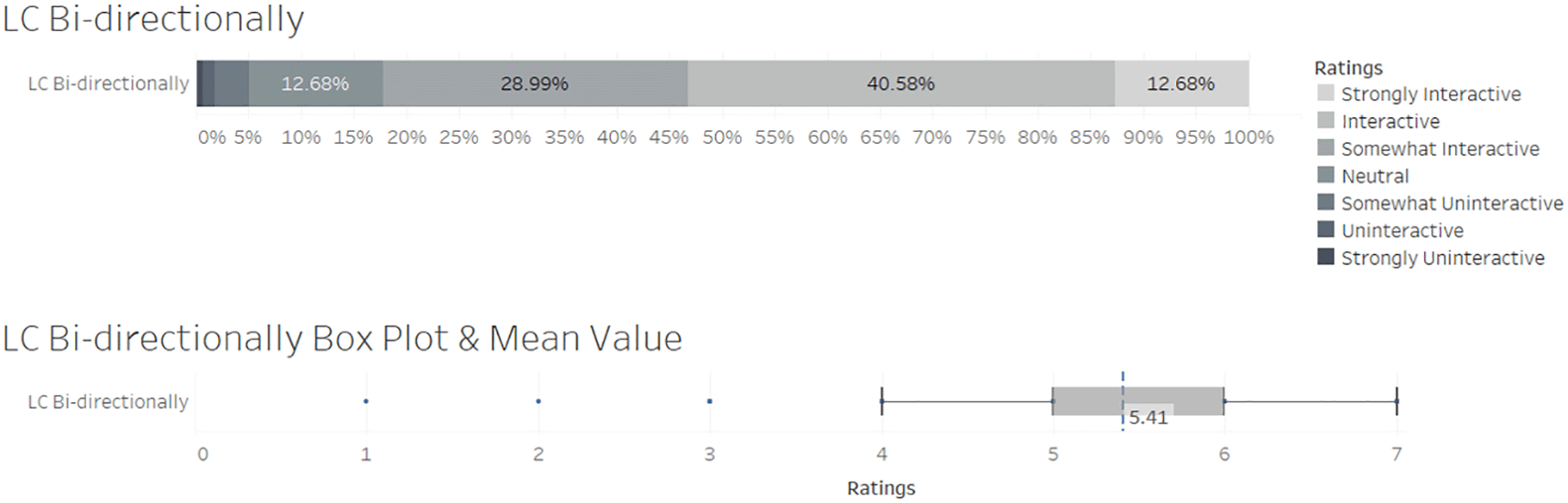 Regarding how interactive the spokespersons of their choice are towards the public (Figure 9), most respondents tend to answer “interactive” (40.58%), followed by “somewhat interactive” (28.99%). Overall, the means for perceived interaction between the spokespersons and the public is 5.41.