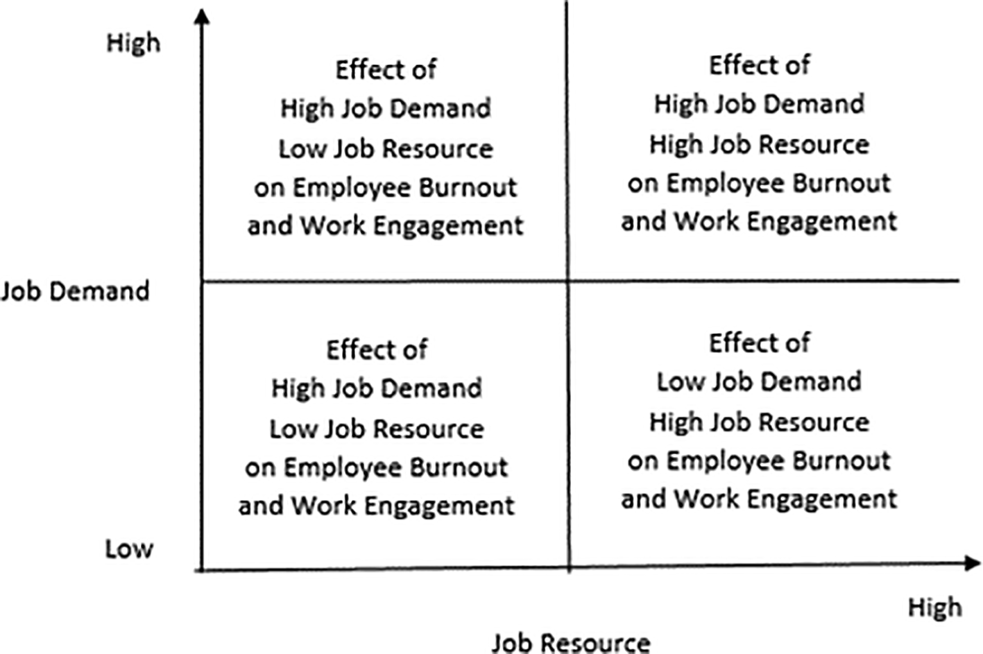 The DCM, ERI, and JD-R models theorize the relationships among job resources, job demands, burnout, and work engagement. The JD-R Model is essentially a model of employee well-being. Researchers have proposed this model to overcome the limitations of two earlier models of employee well-being: the DCM (Karasek, 1998) and the ERI model (Siegrist, 1996).