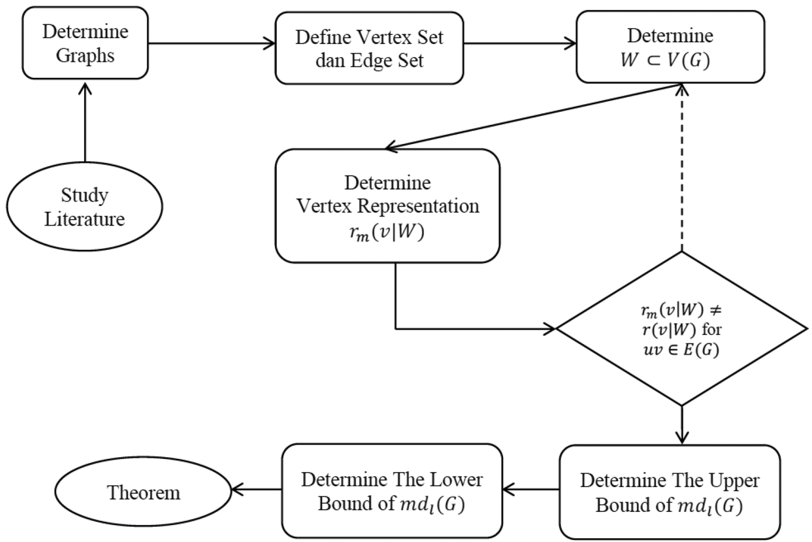 All graphs G are simple, finite, and connected. Given that the vertex set V (G) and the edge set E(G), we write G = (V, E). The distance of u and v, denoted by d(u, v) is the length of the shortest path of the vertices u to v. For the set W = {s1, s2, …, sk} ⊂ V (G), the vertex representations of the vertex x to the set W is an ordered k-tuple, r(x|W) = (d(x, s1), d(x, s2), …, d(x, sk)). The set W is called the resolving set of G if all vertices of G have different vertex representations. The resolving set having minimum cardinality is called basis and its cardinality is called metric dimension of G, denoted by dim(G).3 Okamoto et al.4 introduced the new variant of resolving set problems which is called local resolving set problems. In his paper, this notion is called a local multiset dimension of graphs G. The set W is called a local resolving set if for every xy ∈ E(G), r(x|W)≠r(y|W). The local resolving set having minimum cardinality is called local basis and it’s cardinality is called local metric dimension of G and denoted by ldim(G).