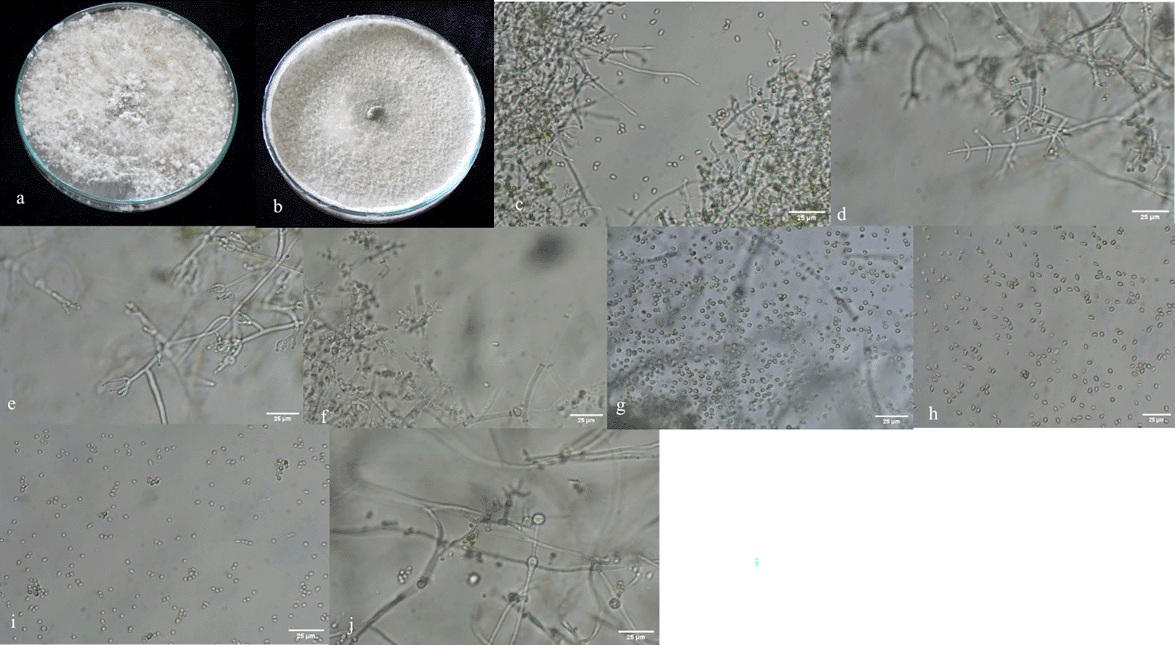 a, b: with and without aerial mycelium. c–f: different types of phialides. g–i: different types of spores. j: presence of chlamydospores in Trichoderma asperellum.