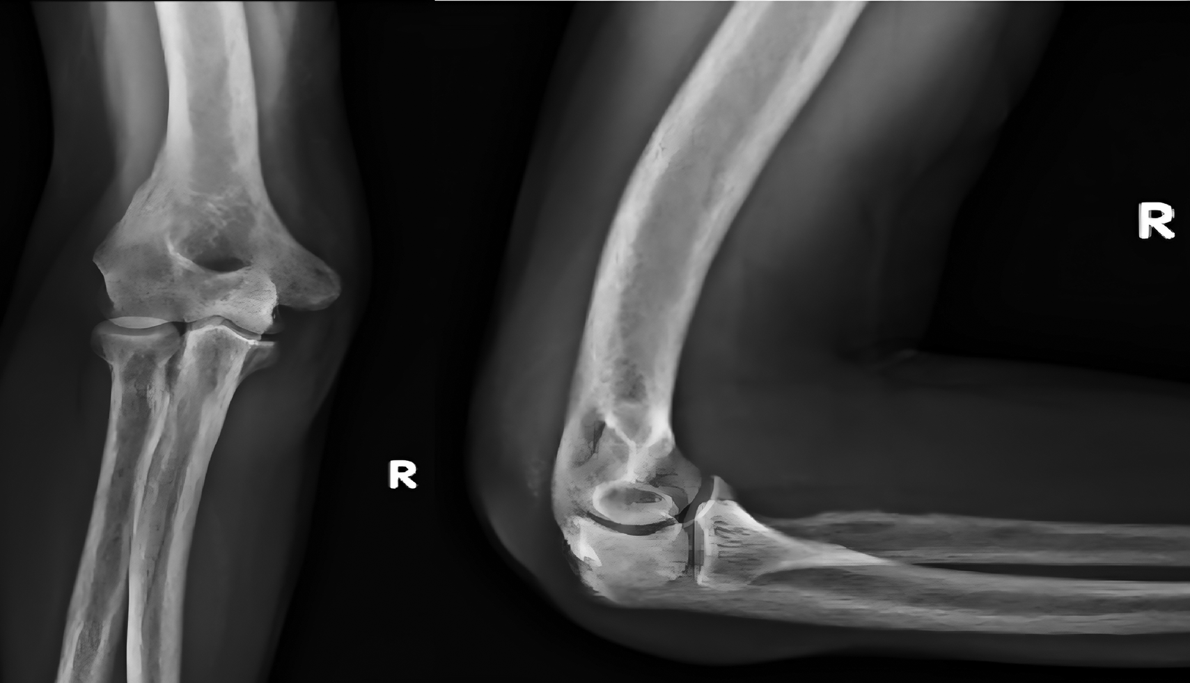 A 44-yr old male with ESRD secondary to immunoglobinA nephropathy with a history of allograft rejection during three weekly hemodialysis sessions for 10 years presented with complaints of right elbow extension weakness following trivial trauma. Physical examination revealed swelling of the right elbow with grade 0 power in the elbow extensor mechanism. Radiographs showed an avulsed triceps tendon (Figure 3).