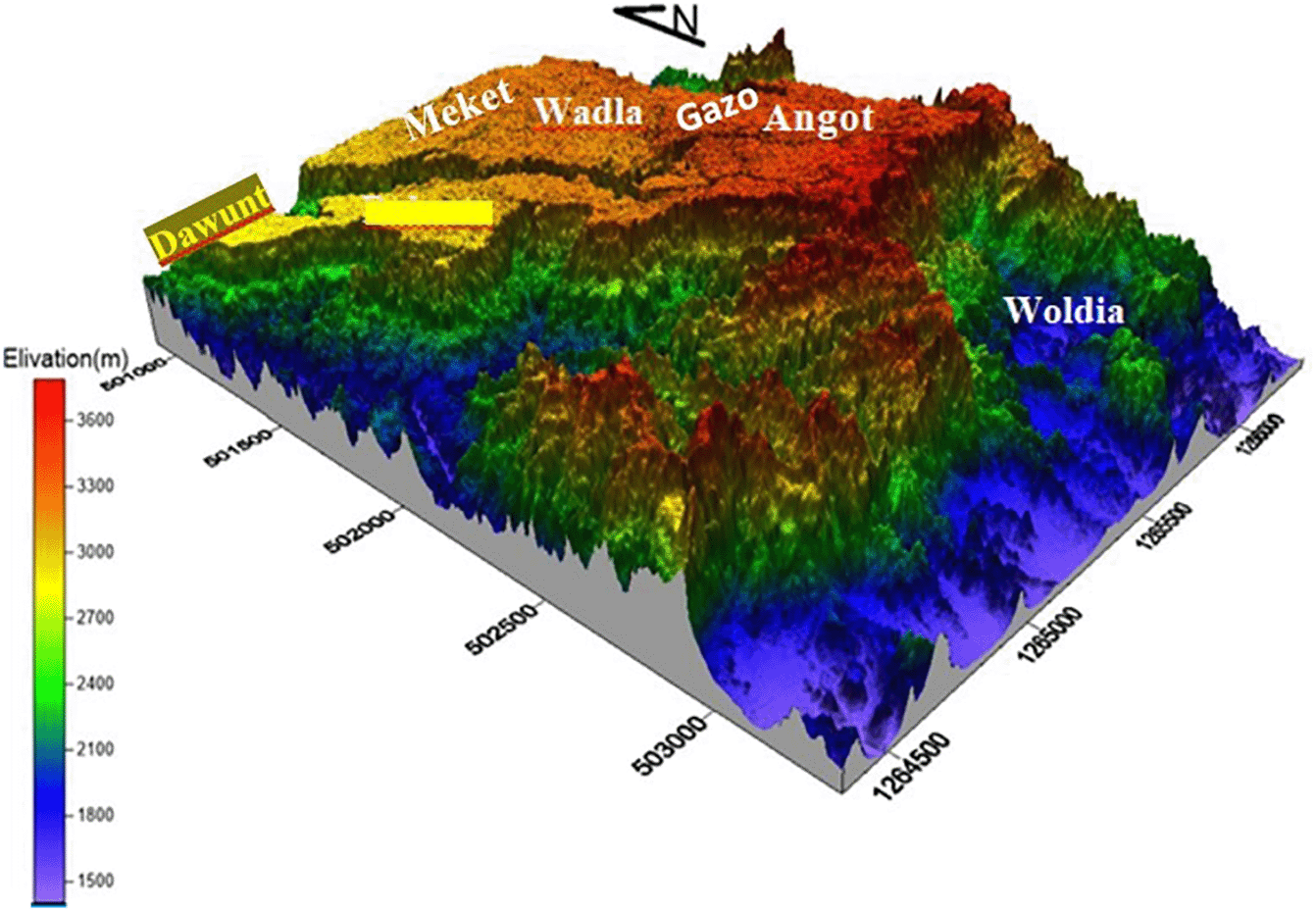 The target area is located in northern Ethiopia, Amhara regional state specifically ~550 km north of Addis Ababa, the capital city of Ethiopia (see Figure 1). Geographically UTM coordinates of 1284000N bound it to 1330000N and 501000E to 506000E latitude and longitude respectively. The area is accessible through Woldiya-Bahr Dar asphalted roads, and a number of gravel roads and footpaths generated by the local people and the administration. The north wollo zone has 13 rural districts and 5 urban city with diversified culture religion and climate. The zone is broadly classified in to lowland and highland districts based on alltitude. The target area of this study founds on the highland districts namely Wadlam Angot, Meket, Dawunt and Gazo (Habte et al., 2020).