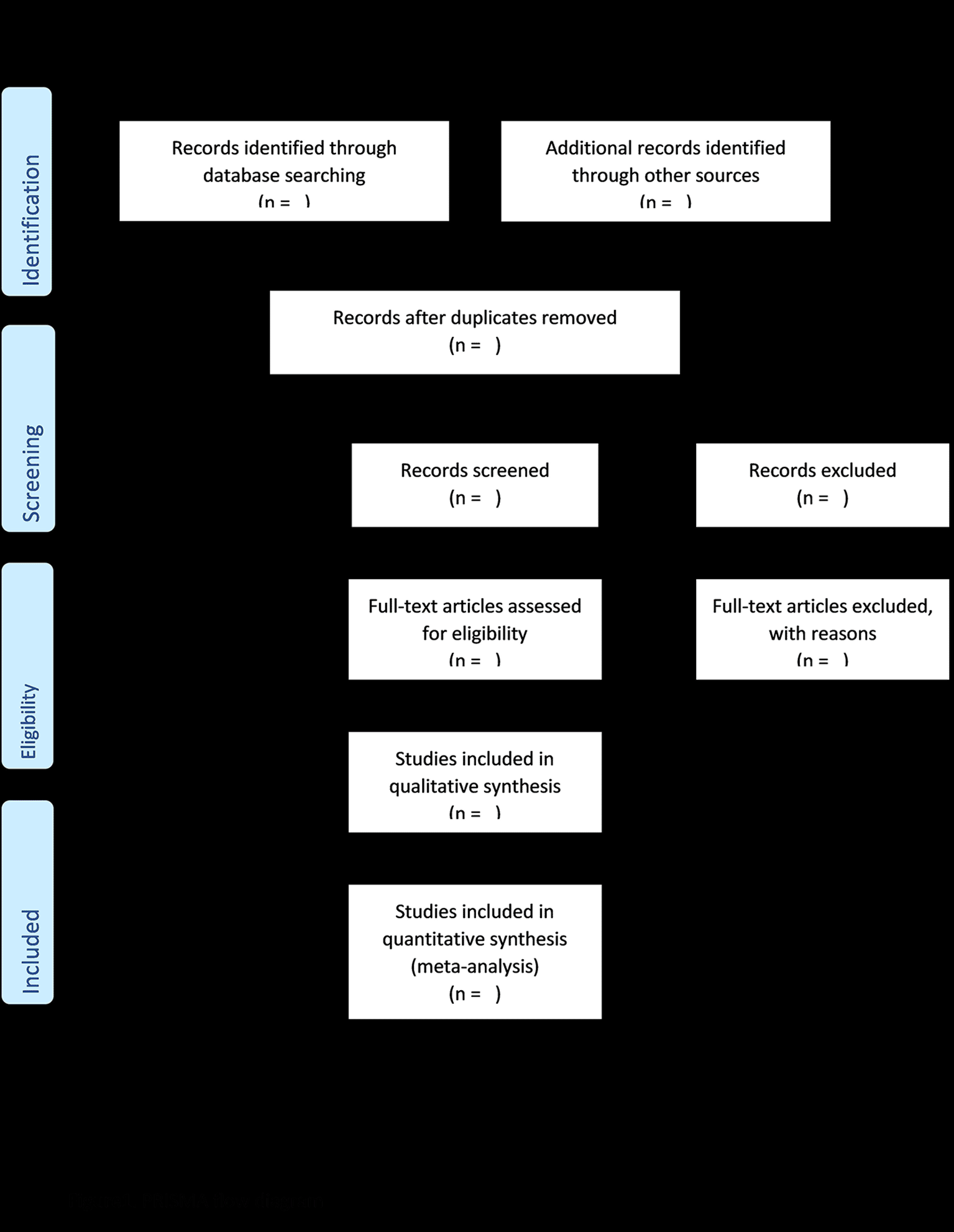Search results of electronic articles to be will be exported to Covidence Five independent reviewers will the carryout the title, abstract and full text screening whilst also removing duplicates that were not identified by Covidence. Articles that meet the inclusion criteria will be included for full text review and independent screening will be done by the five reviewers. Consensus will be established by discussion among the reviewers and an arbitrator will be sought in instances of disagreement. The articles selection process will be documented using the Preferred Reporting Items for Systematic Reviews and Meta-Analyses (PRISMA) flow chart – see Figure 1. The selection of eligible articles will be guided by the following inclusion and exclusion criteria:
