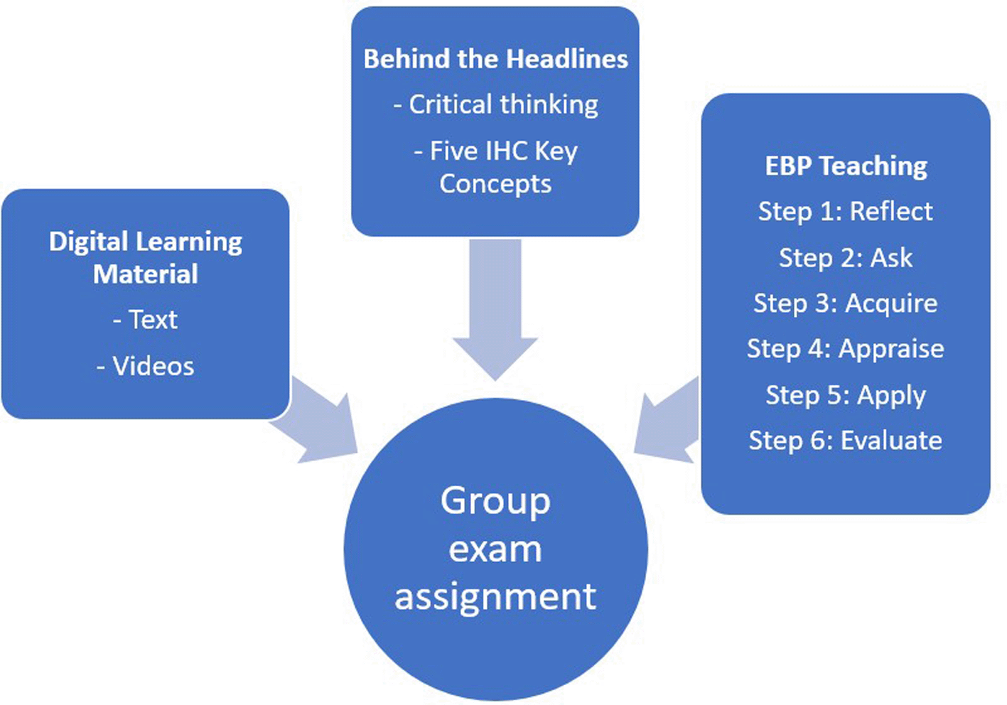 A core element of our EBHC course was the collaborative exam assignment, which was designed to promote critical reflection and student engagement, enhance learning outcomes, and assess students’ grasp of EBP principles. The students recognized group collaboration as vital for promoting critical thinking44 and experienced the benefits of collaborative efforts in critically assessing a health claim and discussing the research evidence. Engaging with peers in the group setting probably encouraged them to challenge assumptions, consider alternative viewpoints, and arrive at well-informed conclusions.45