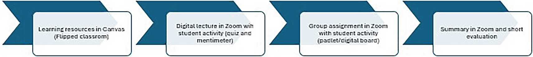 To ensure a standardized learning experience for students, we adopted a consistent approach across different fields of study. This involved using the same learning materials provided in Canvas and employing teaching methods in EBP based on the Norwegian adaptation of the CASP model.14 All lecturers were familiar with the teaching material, and there was a collective agreement on the content of the presentations. Furthermore, most of the teaching modules were delivered by the same lecturers across all courses.
