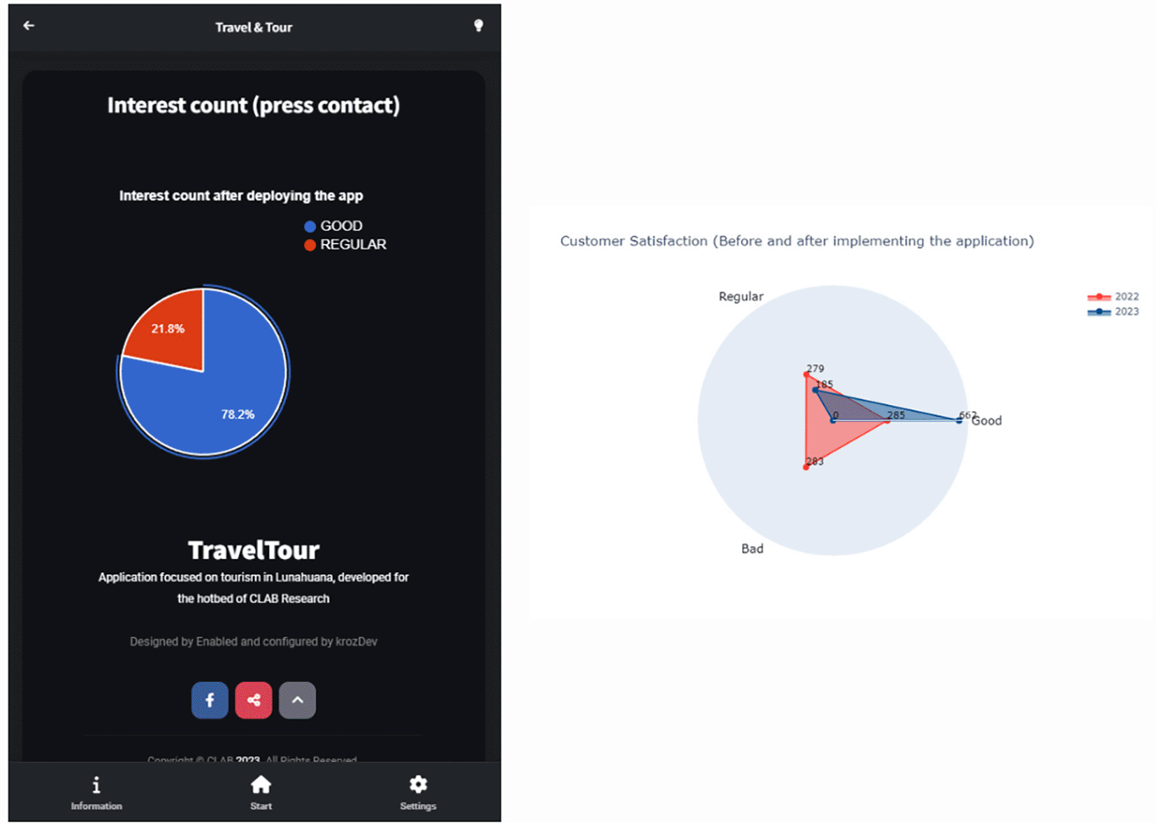 Remarkably, the application captured users' interest and sustained their engagement. This data not only highlights the effectiveness of the application in driving loyalty, but also suggests its potential to reshape expectations and practices in long-term customer engagement. Customer engagement reveals how an immersive experience can revolutionize the connection between customer and brand. This finding suggests that these strategies go beyond simply capturing interest and set new standards in the customer-brand dynamic. This breakthrough is notable not only for its immediate impact, but also for opening the door to future research on how technological immersion can redefine business relationships and customer loyalty. The user satisfaction rate highlights the success of virtual reality innovations that not only improve the customer experience, but also redefine expectations in the tourism sector. These results demonstrate the effectiveness of immersive experiences and their ability to drive tourism in new and engaging ways.