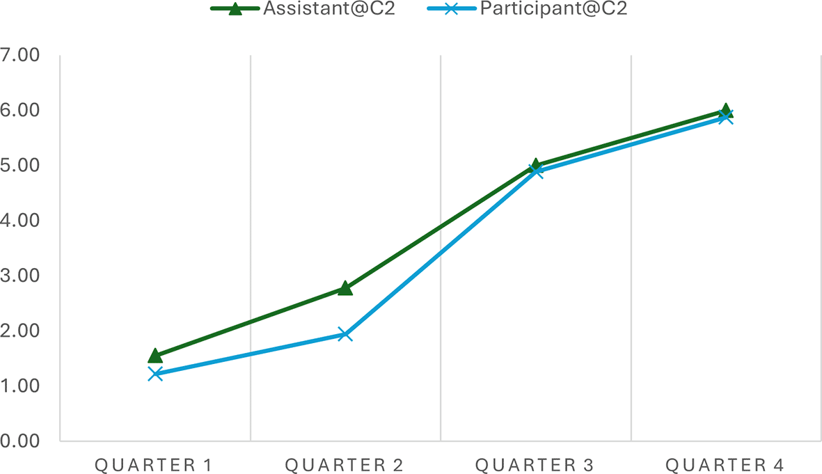 Time Interval | Assistant@C1 | Participant@C1 | Assistant@C2 | Participant@C2 |