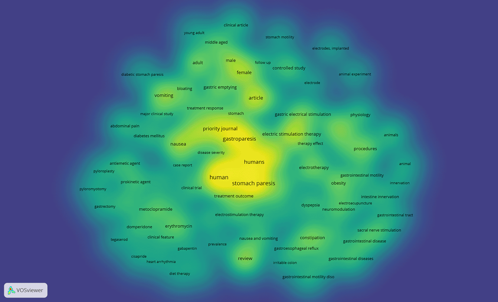 The most important thing in bibliometric studies on the topic of gastroparesis therapy with nerve stimulation is to look for niche themes and map things that researchers have started to leave behind.