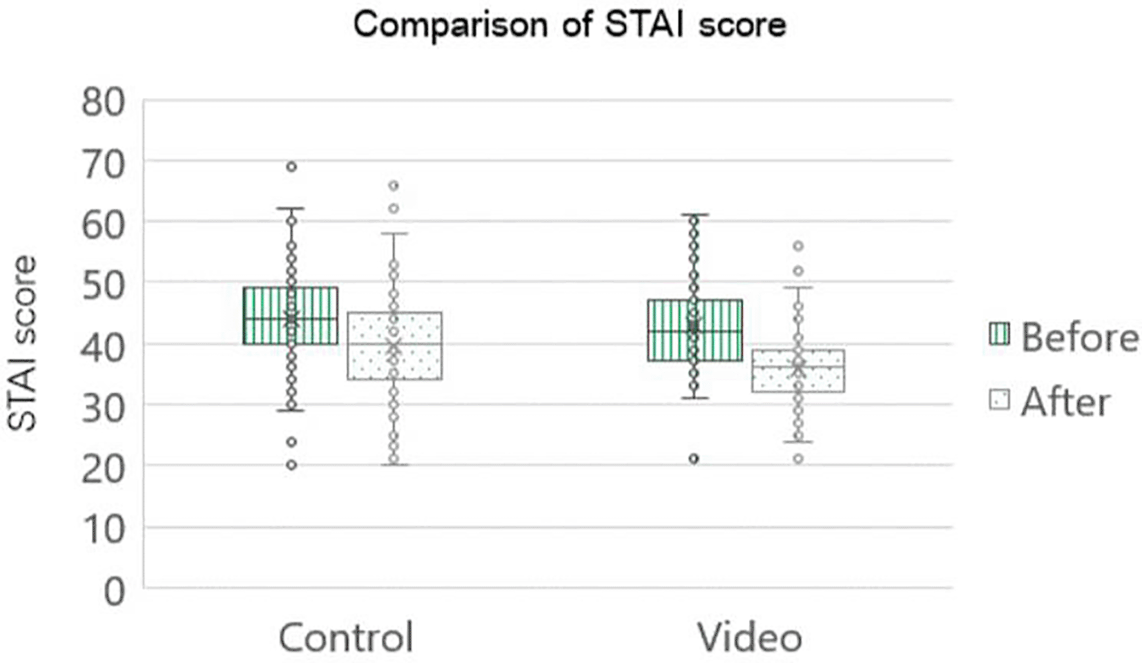 STAI levels | Control | Video | ||||