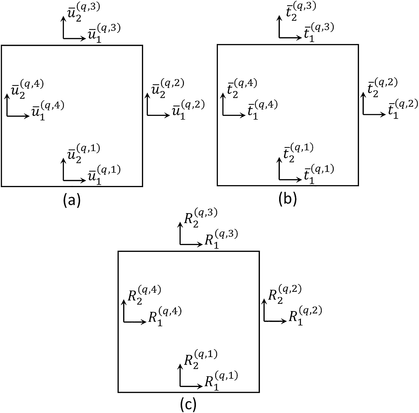 Similarly, considering the application of Cauchy’s law and the plane stress state, the surface-averaged traction components at the subvolume faces can be evaluated as