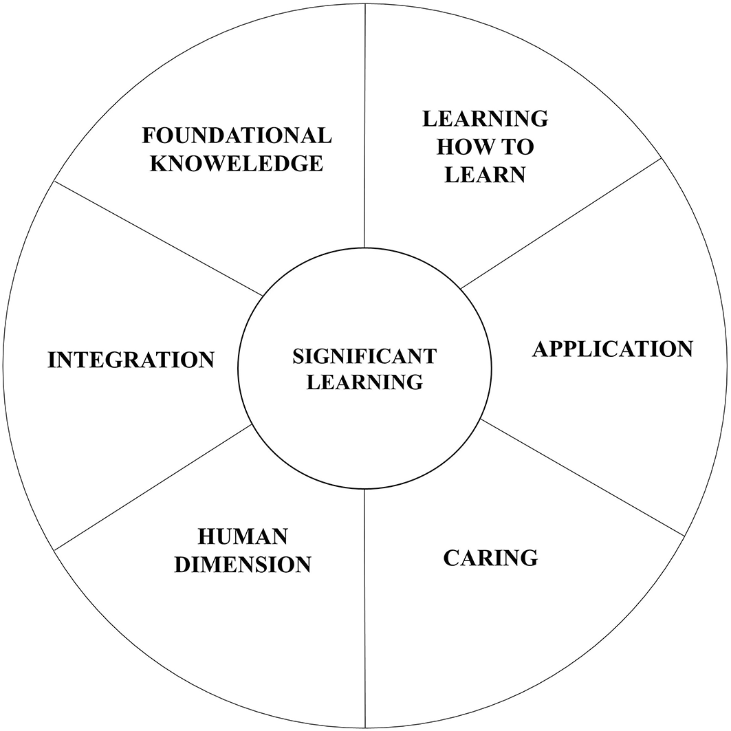 Kate Ford in her technical report has identified the Degree Qualifications Profile (DQP) by Lumina Foundation’s as one of the important learning frameworks which outlines educational outcomes in terms of what graduates should know and can do. The DQP focuses on specific learning areas to organize the competencies of a program (Ford, 2014). For a learning to reach a specific level of performance it is important to know and map how one can get there. Lockyer et al. (2017) have discussed the importance of Miller’s (1990) contribution who related the four levels of learning as a represented in the form of a pyramid. Beginning with what the learner “knows,” the hierarchy then proceeds through levels of “knows how” and “shows how” before reaching the highest level, “does” (Lockyer, et al., 2017). Jeremy Branzetti et al. (2019) attempt to focus beyond the notions of competency and its assessment, saying it is equally important to adopt a focused and a meaningful approach towards curriculum design. According to him, curriculum can be a mitigator to assessment. Fink’s model of taxonomy and its six domains, as learning areas, could be an effective way to achieve this outcome instead of the widely used Bloom’s taxonomy (Branzetti, et al., 2019). Figure 2 explains the 6 domains of fink’s taxonomy of significant learning. These domains can be understood for its relevance with architectural education as well.