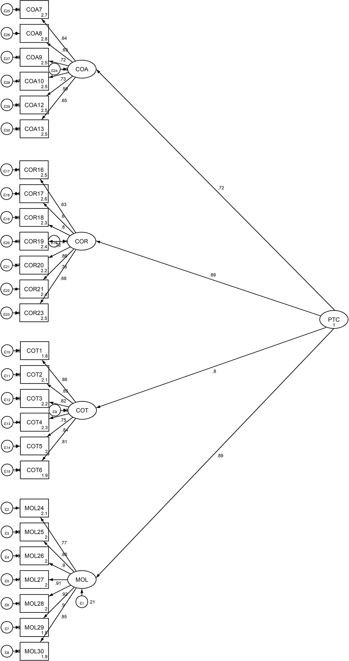 All four factors of PTC have demonstrated satisfactory validity in terms of convergent validity, discriminant validity, and model fit in the final PCS. A high degree of estimation reliability has also been demonstrated by the PCS.