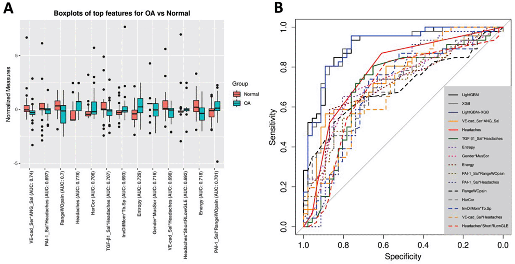 In the University of Michigan, Bianchi et al.29 discussed the potential of early diagnosis of TMJOA using biomarkers and machine learning, via understanding the interactions between disease and health-related biomarkers. Biomarkers such as C-reactive protein (CRP), interleukins, and matrix metalloproteinases (MMPs) show potential in indicating early stages of OA and they are available in saliva, blood and synovial fluid. Advanced data science was employed to evaluate fifty-two clinical, biochemical, and high-resolution images CBCT (radiomics) parameters comprising TMJOA patients and control groups. The diagnostic effectiveness was assessed using four ML models XGBoost, logistic regression, lightGBM, and random forest. The XGBoost and the LightGBM model achieved (0.823) accuracy, F1-score (0.823) and AUC (0.870) in diagnosing TMJ OA Figure 2.29