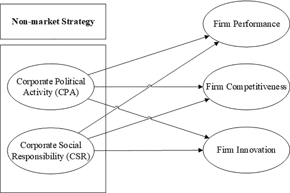 By integrating CPA and CSR into a unified non-market strategy, this framework captures a multidimensional view of firm strategic behavior. It suggests that the most successful firms are those that simultaneously engage political institutions and societal stakeholders, using CPA and CSR not as substitutes, but as complementary tools. The three firm outcomes such as: performance, competitiveness, and innovation, thus positioned as critical measures of strategic effectiveness in navigating complex business environments.