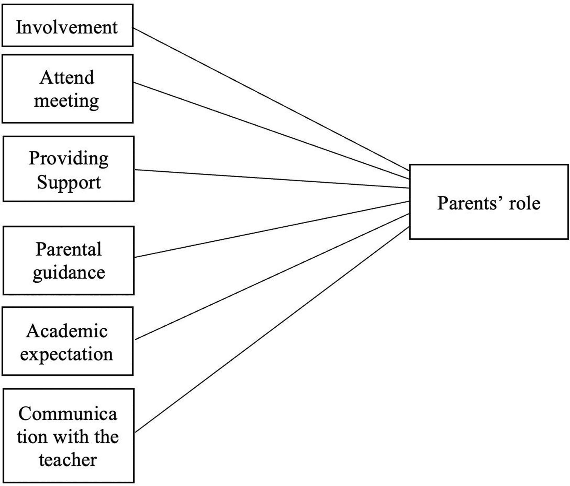 Various research papers have assessed the role of parental involvement in enhancing children’s academic achievements. The engagement of parents in their children’s English studies shows a significant link to the children’s proficiency in the language (Butler & Le, 2018). Support provided by parents at home plays a crucial role in boosting students’ academic performance (Tan & Caleon, 2022; Torrecilla & Hernández-Castilla, 2020). According to Kim et al. (2020), the psychological and behavioral participation of parents has a more profound effect on the motivation and accomplishments of children than the parents’ educational background. Communication between parents and teachers has been shown to augment students’ achievements (Tan & Caleon, 2022) as well as their engagement and motivation to master English (Fan & Williams, 2010). Involvement of parents in extracurricular activities and attendance at parent meetings has a notable influence on student performance (Torrecilla & Hernández-Castilla, 2020). Additionally, parental guidance is a positive predictor of students’ intrinsic motivation to advance their English skills (Fan & Williams, 2010), while parents’ academic expectations align positively with students’ English proficiency (Butler & Le, 2018), achievements (Tan & Caleon, 2022), engagement levels, and intrinsic motivation in English (Fan & Williams, 2010). Figure 1 illustrates some parents’ roles in young learners’ English learning based on the literature.