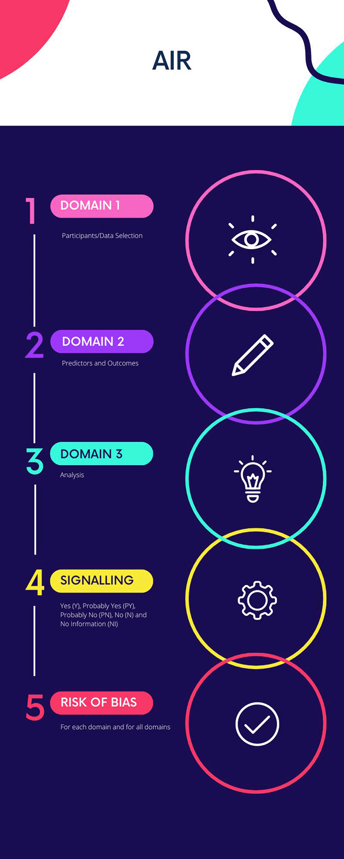 Our tool (AIr) consists of 10 questions and can be utilised to assess the risk of bias in model development, external validation, and the combination of the two in machine-learned or artificial intelligence models.