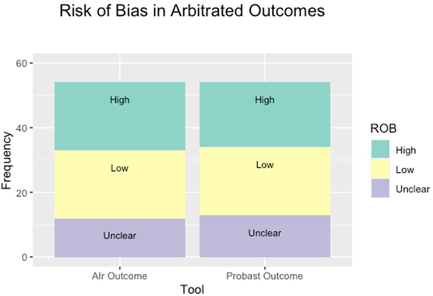 Analysis of inter-rater reliability via Weighted Cohens Kappa showed a ‘moderate agreement’ for AIr with a weight value of 0.47. In comparison, there was less inter-rater reliability with a ‘fair agreement’ between analyses for PROBAST with a Weighted Cohens Kappa of 0.35.
