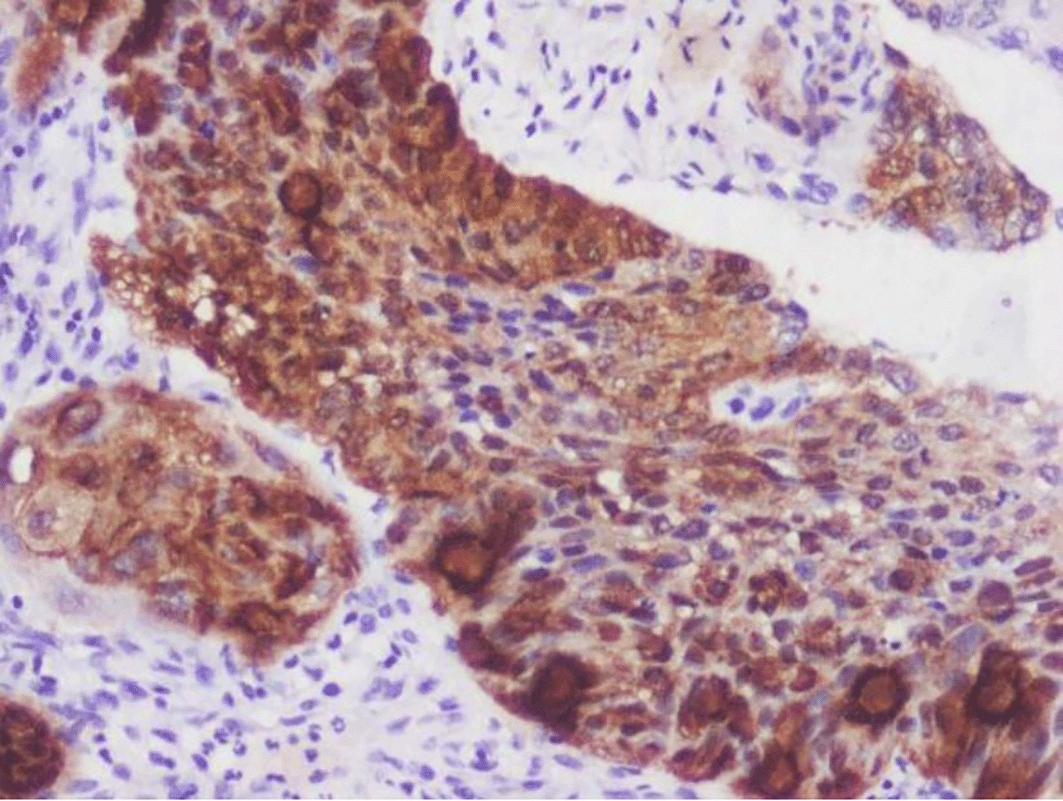 The IHC-stained slides were assessed separately by two pathologists. To avoid bias during assessment, they had no access to the patients’ clinical data. During the occurrence of inter-observer variation in assessment, specific slides were made to be viewed together, and their consensus opinion was taken into consideration ( Figures 1-4).