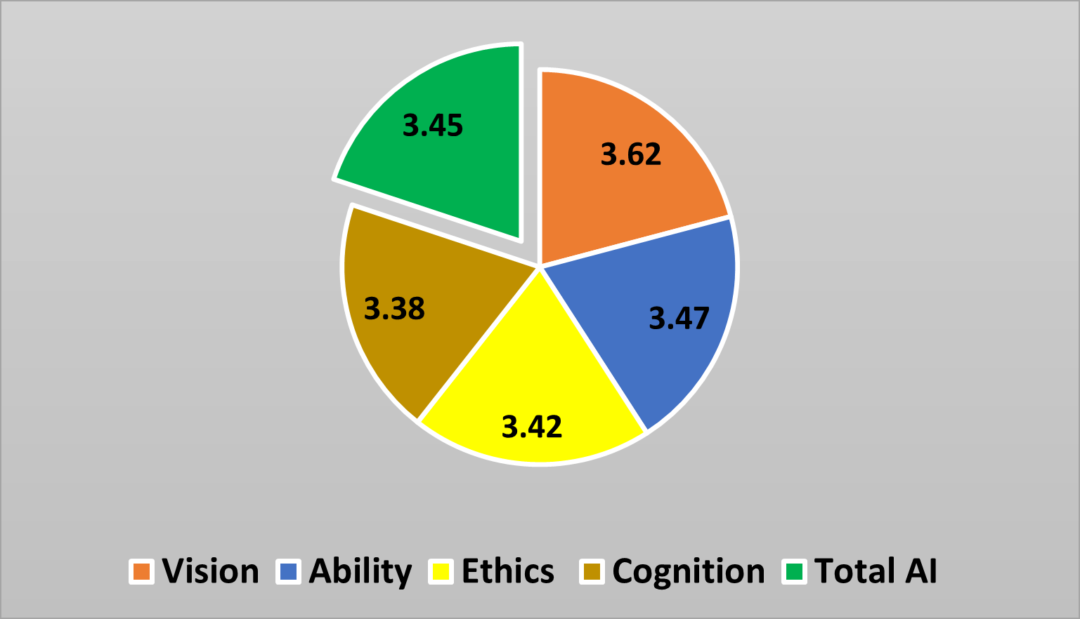 This policy brief presents the findings of a study conducted in 2024 involving 1,916 medical students from years one to five at kermanshah University of Medical Sciences. The study utilized a census sampling method. The instrument employed was the Medical Artificial Intelligence Readiness Scale for Medical Students (MAIRS-MS), developed by Karaca et al., which consists of 22 questions across four subscales: cognition, ability, vision, and ethics. All participants provided written informed consent before completing the questionnaire. The consent process included comprehensive information regarding the study’s purpose, procedures, potential risks and benefits, and the voluntary nature of participation. Participants were informed of their right to withdraw at any time without facing any consequences. Since all participants were medical students aged 18 years or older, no minors were involved, and therefore, parental consent or assent was not required. Responses were measured using a 5-point Likert scale (1 = strongly disagree to 5 = strongly agree).20 The overall mean score for the scale in this study was 3.45 ± 0.40. Among the subscales, “vision” received the highest score, while “cognition” received the lowest ( Figure 1). The validity and reliability of the Persian version of this questionnaire were previously established by Ghalibaf et al. (2023) among medical students at Mashhad University of Medical Sciences, with Cronbach’s alpha coefficients of 0.886, 0.905, 0.865, and 0.856 for the cognition, ability, vision, and ethics subscales, respectively, and an overall Cronbach’s alpha of 0.944 for the entire scale.21 Similarly, a study by Rezazadeh et al. among medical students in Kerman confirmed the questionnaire’s validity and reliability, reporting an overall Cronbach’s alpha of 0.94.22 In the present study, the Cronbach’s alpha coefficient was 0.762.