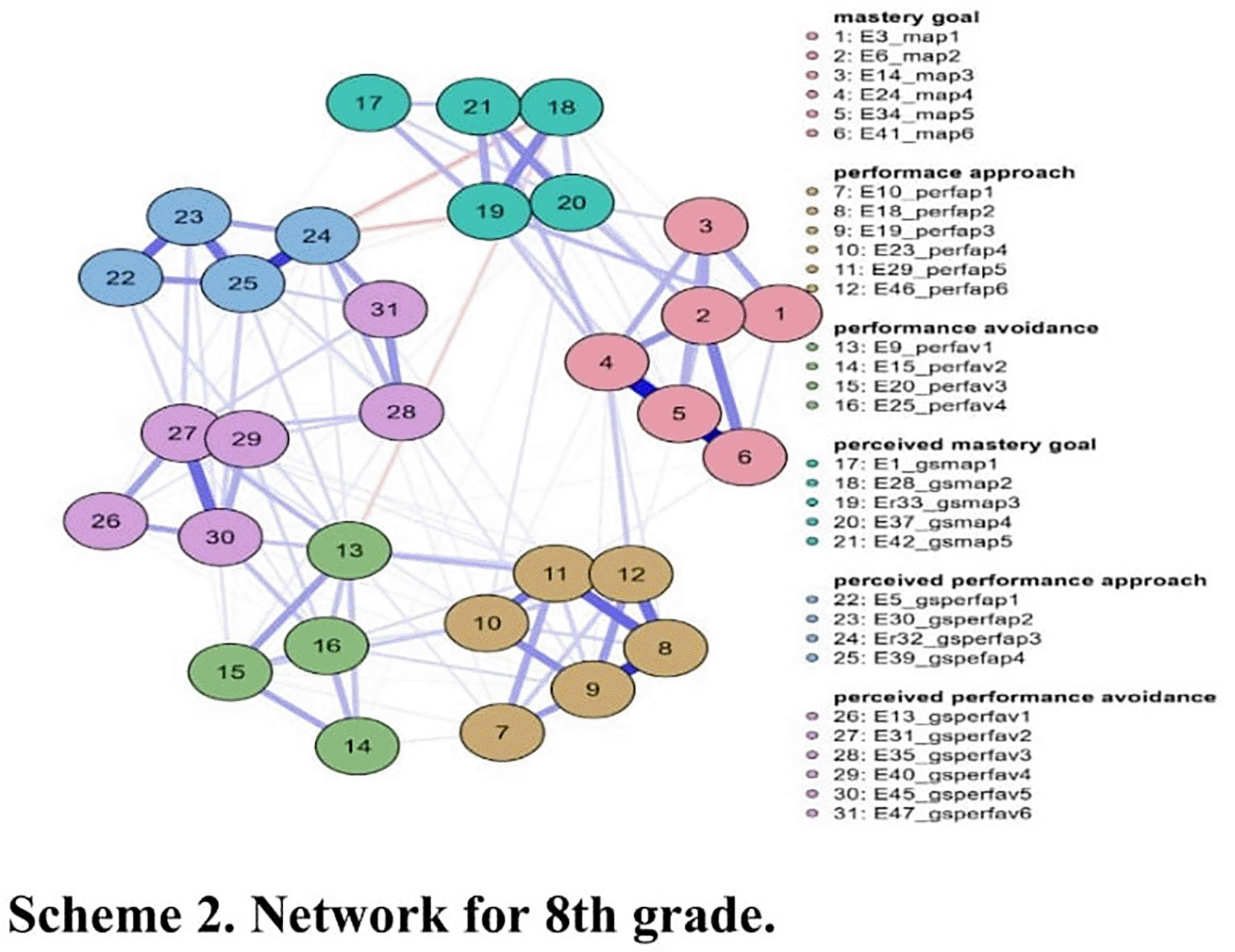 Regarding the second research question, which pertains to the differentiation of individual and perceived achievement goals in the three grades, differentiation is observed in 8th grade across all tested combinations of variables. Further details regarding this differentiation are provided in the first section. The overall reshaping of the micro-level network structure may be due to the transition of both the developmental and grade levels. Nevertheless, this finding deserves further investigation.