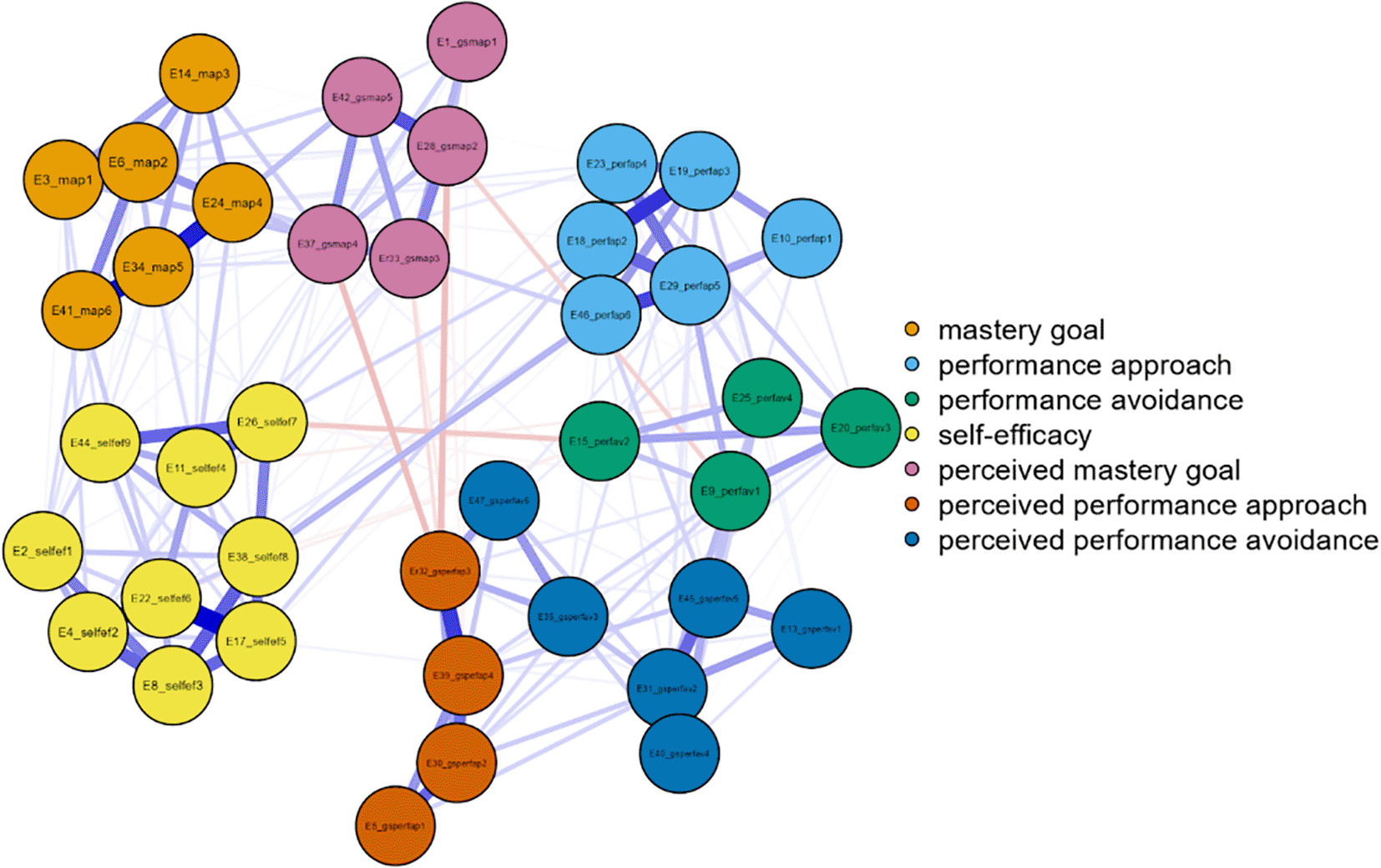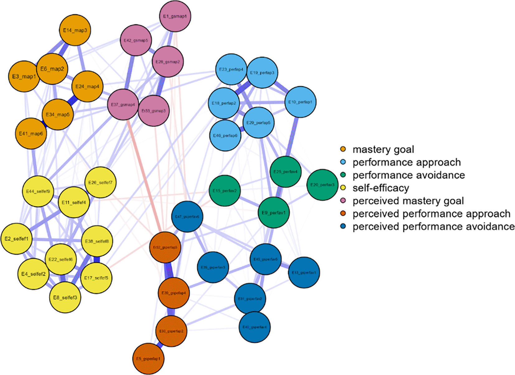 This study adopts a non-linear approach to explore the relationships among motivation variables, focusing on mastery and performance goals, along with perceived teachers’ goals. Unlike traditional methods (Linnenbrink et al., 2018; Stavropoulou et al., 2023), it applies network ontology to represent these psychological constructs as systems of interconnected elementary concepts, which is consistent with complexity theory. This approach draws on latent-variable representation theories and uses network analysis to reveal emergent qualitative entities. This methodology aligns with contemporary psychometric frameworks, highlighting the innovative use of network analysis in studying motivational goals (Borgatti & Halgin, 2011; Siew, 2020; Siew et al., 2019).
