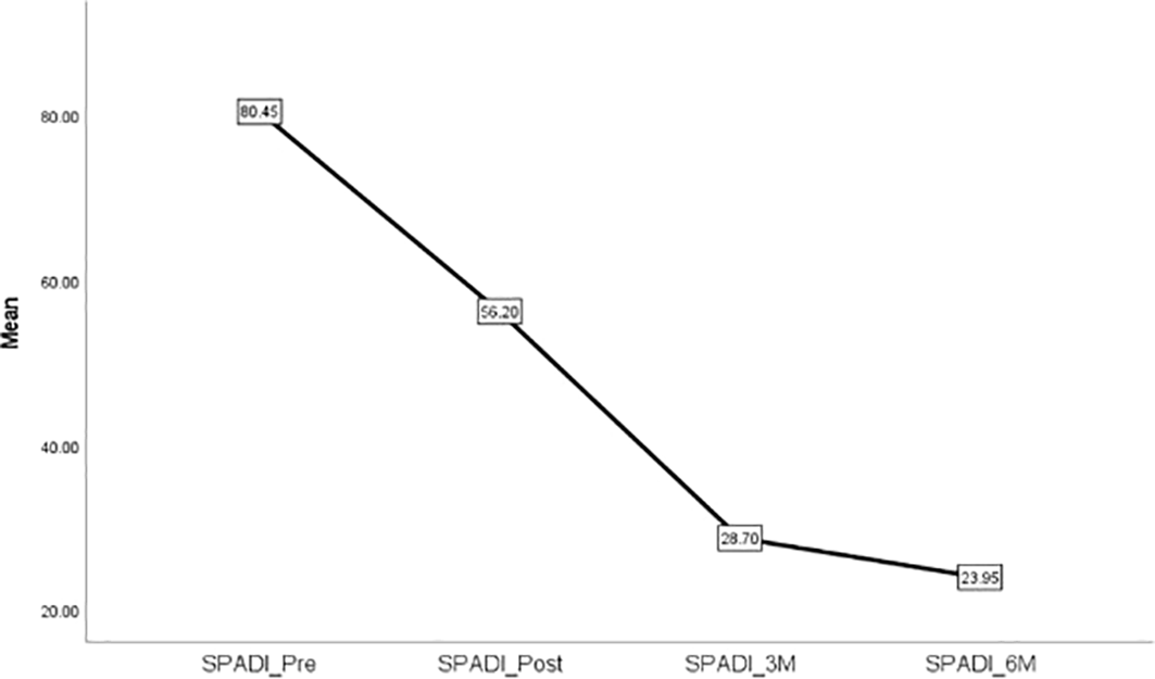 Figure 8. Timeline changes of SPADI in patients with FS.