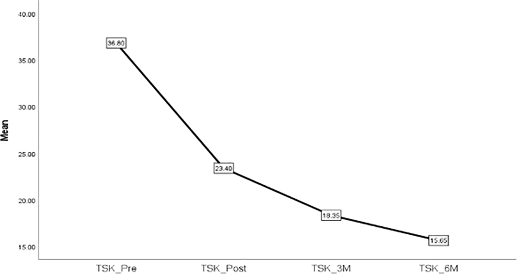 Figure 9 shows the timeline changes in TSK scores in patients with FS.