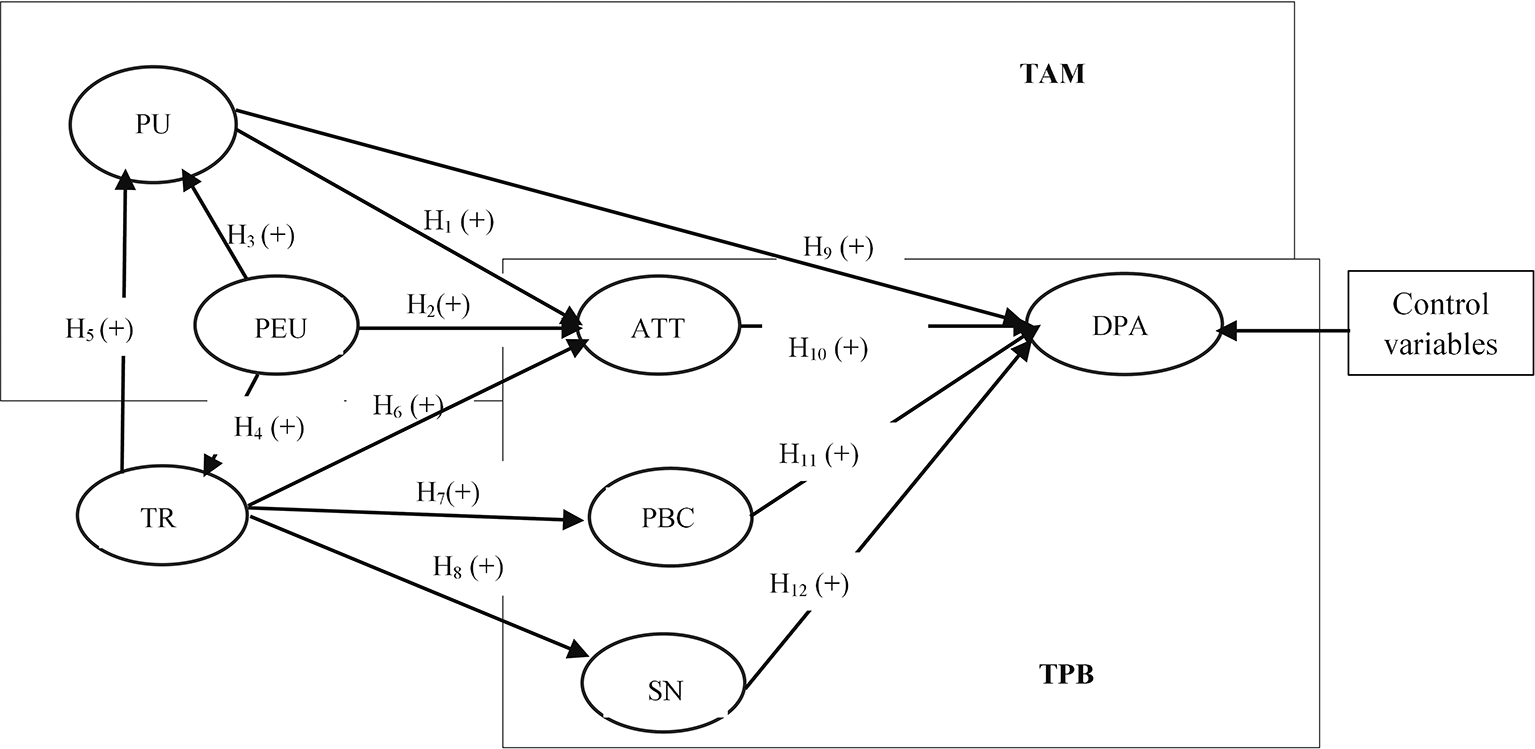 Trust is a key determinant of perceived usefulness, particularly in the digital payments environment, as it assures consumers that they will experience the expected benefits from service providers. In addition, trust is recognized to positively influence PU because it allows consumers to feel comfortable being vulnerable with e-vendors, ensuring they receive the expected value from their interactions and services (Pavlou, 2003). When consumers initially trust their e-vendors and perceive that adopting an online tax will enhance their job performance, they are more likely to believe that the online tax is beneficial (Wu & Chen, 2005). Hence, we propose the following hypothesis: