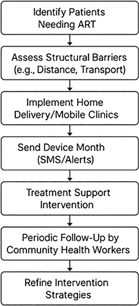 This flowchart demonstrates how the identification of barriers and subsequent integration of targeted interventions can create a robust system that supports ART adherence in rural regions like Vhembe.
