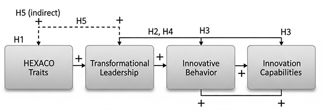 • H5: CEO personality traits have an indirect effect on innovation capabilities through the sequential mediation of transformational leadership and innovative behavior (Kim & Yoon, 2025).