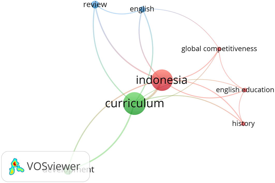 The co-occurrence analysis revealed three interconnected elements throughout English curriculum research in Indonesia, as depicted in Figure 2. The color-coded mapping delineated separate yet interconnected conceptual domains: the red group, signifying historical and policy orientations; the green group, highlighting curriculum development and innovation; and the blue group, representing review-based and evaluative perspectives.