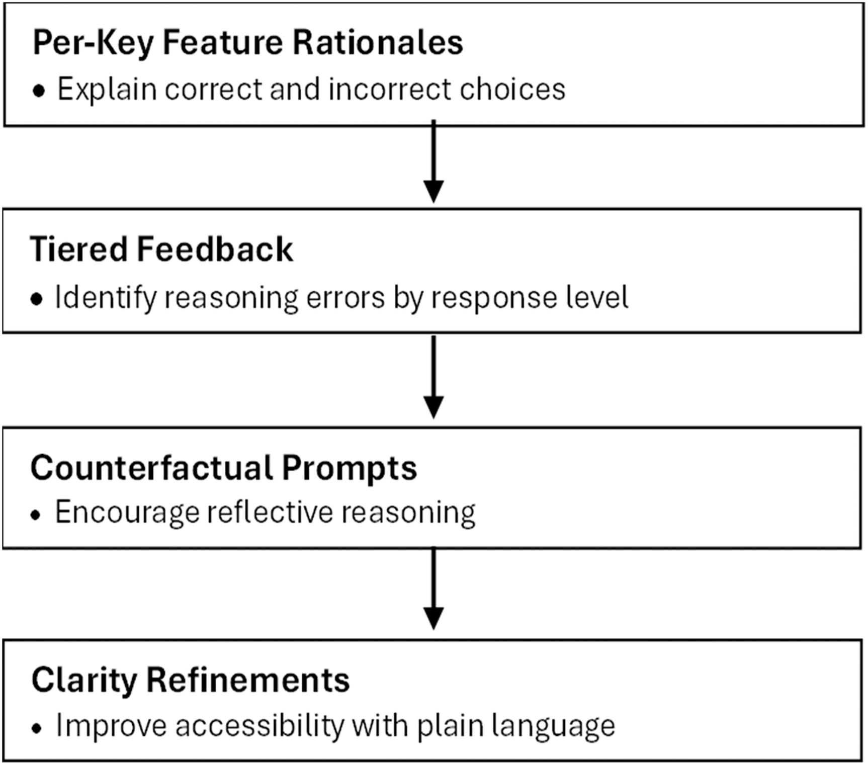 • Calibrate complexity and format to learner level, then validate with a simple 5-step chain.