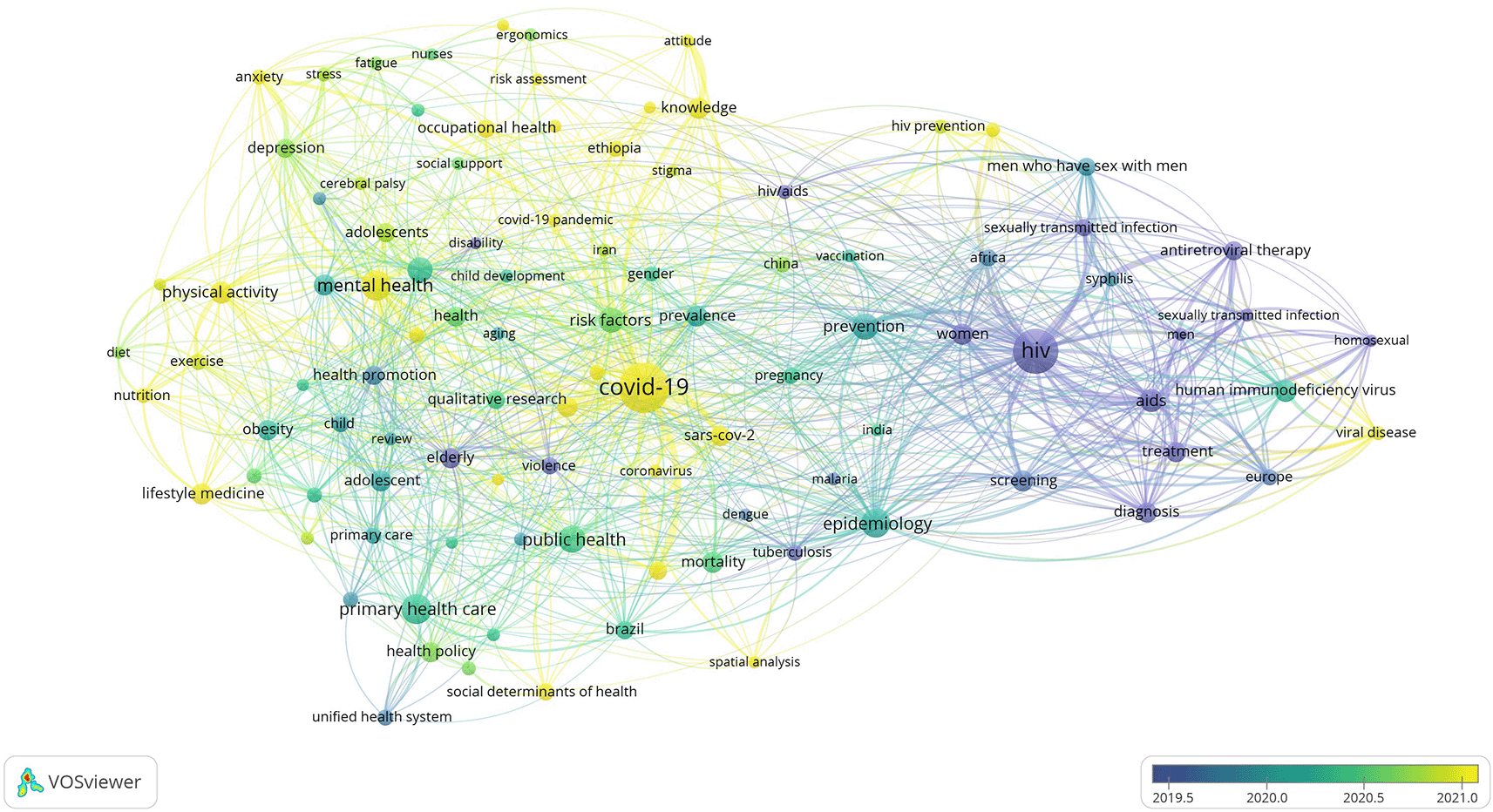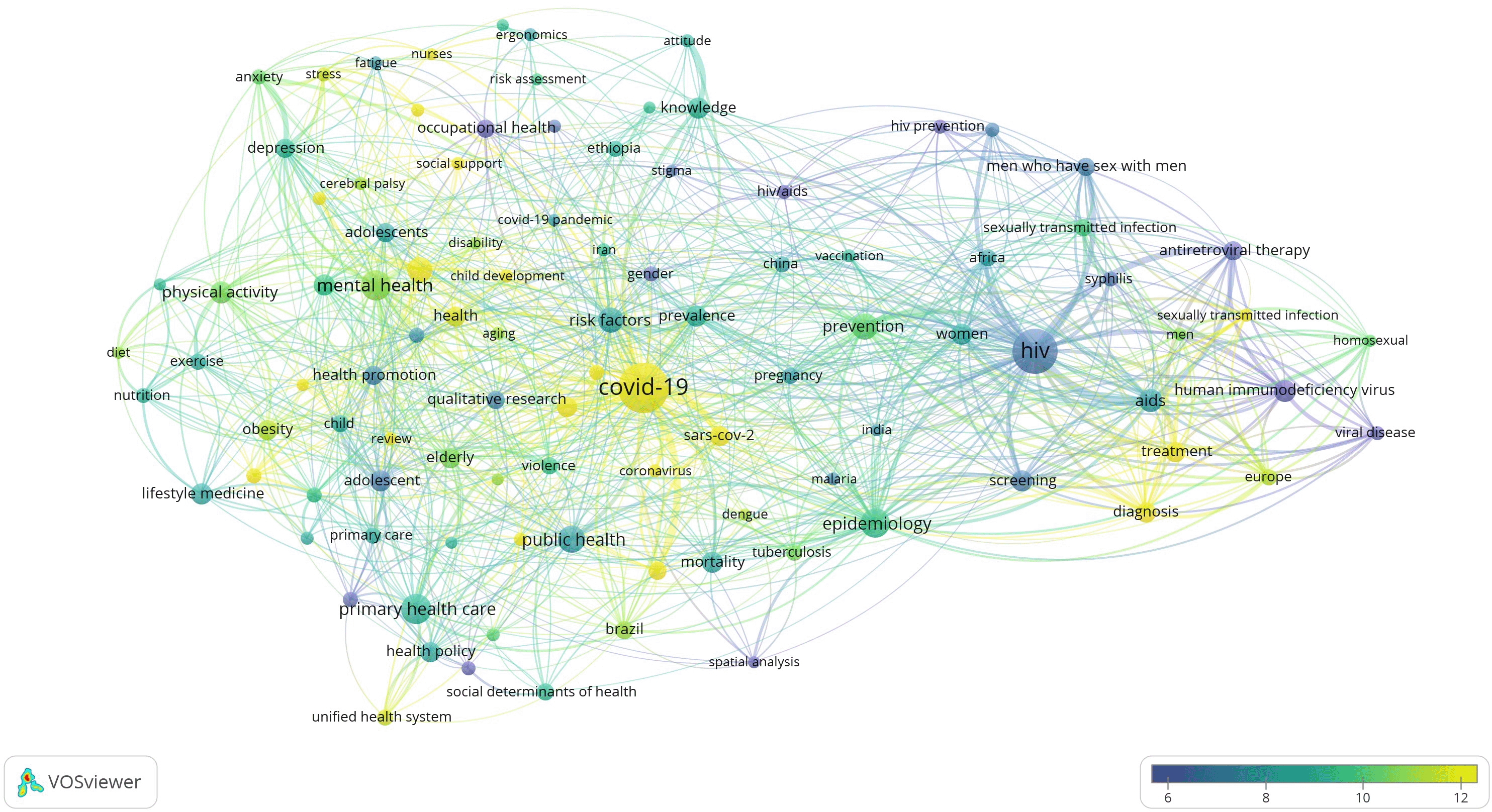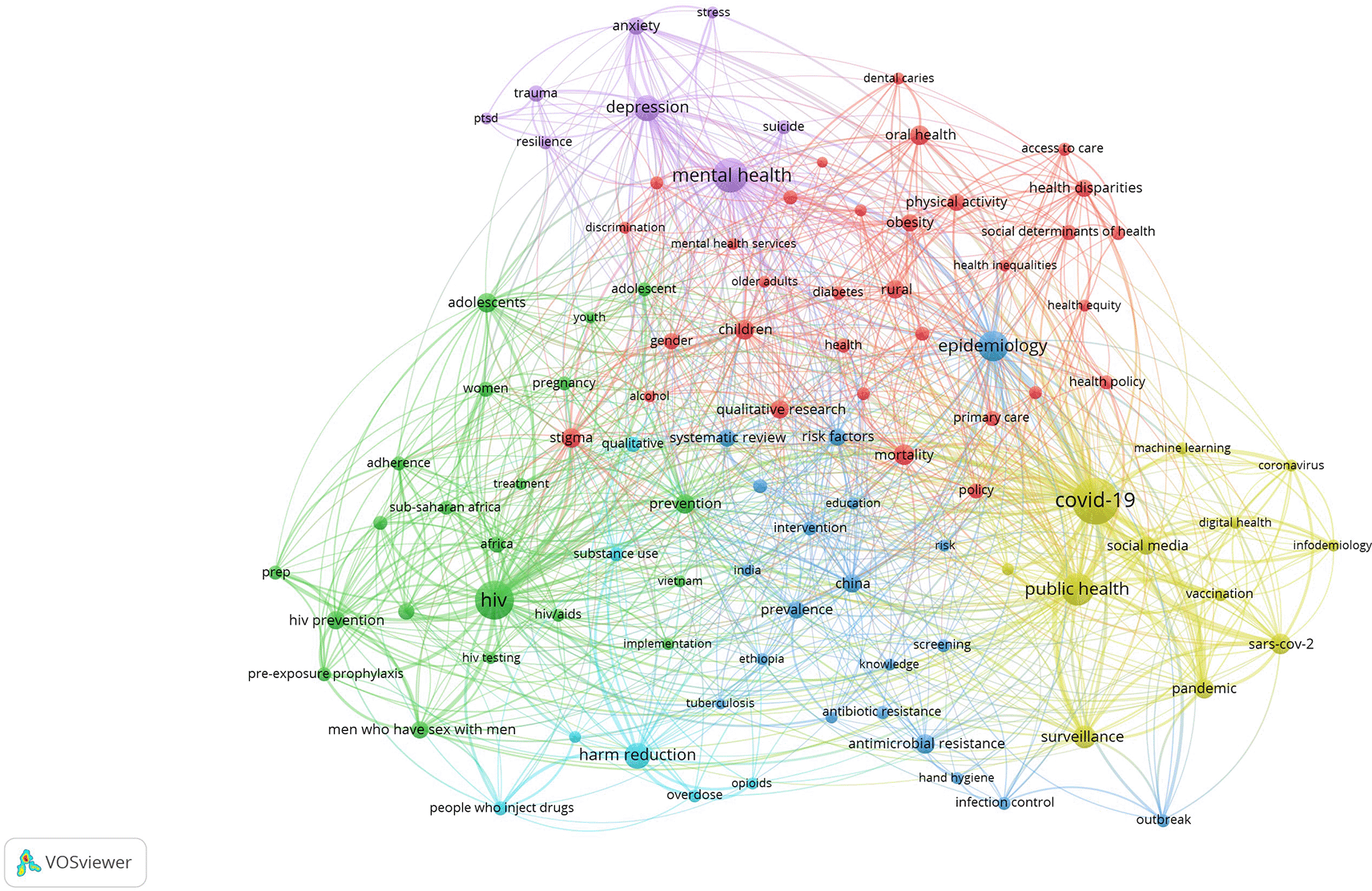 The findings of our study uphold the findings of prior studies: COVID-19 became a focal point in scientific research published from 2016 to 2025.19 Keywords such as “COVID-19,” “SARS-CoV-2,” and “mental health” consistently stood out, which is not surprising given the radical increase in pandemic-related studies during this time. This has also been noted in other bibliometric research works. The preeminence of COVID-19 publications in well-known scholarly works is confirmed by others’ findings,19,20 who made the same observations about pandemic-related issues in top-tier journals. The common recurrence of “mental health” in Q1 and Q2 journals is probably consistent with widespread concerns about the psychological effects of the pandemic, highlighted.21