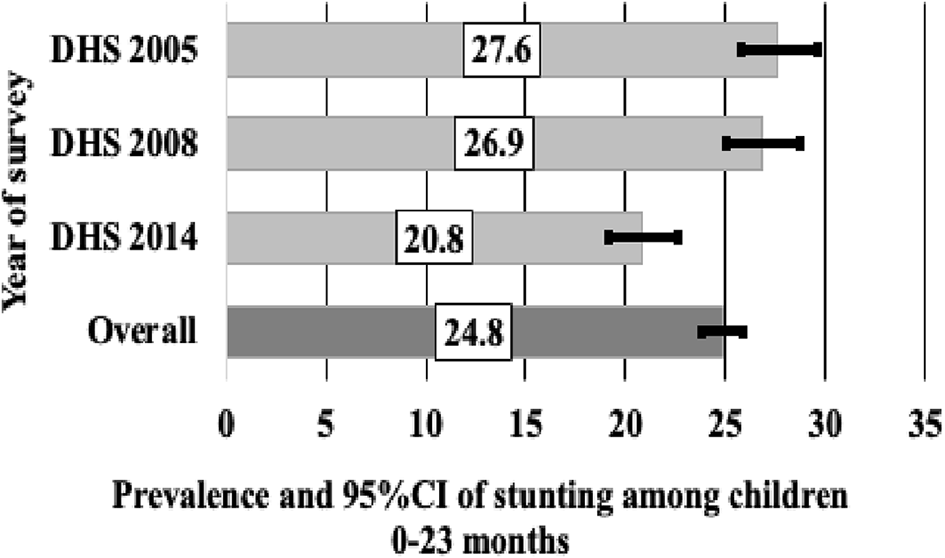 Therefore, this study aimed to investigate stunting among children aged 0-23, 24-59 and 0-59 months in Egypt and explore associated factors by pooling the 2005, 2008, and 2014 EDHS. The study will contribute to the growing body of evidence that informs national government institutions, public health researchers, and policymakers working to address the underlying factors associated with child stunting in Egypt. It stands out from previous research on stunting among children in Egypt due to its unique focus on combining data sets from 2005 to 2014. The study utilises population-based national representative data and provides age-specific results by examining the prevalence of stunting in three age groups: 0-23 months, 24-59 months, and 0-59 months across the three-survey data.