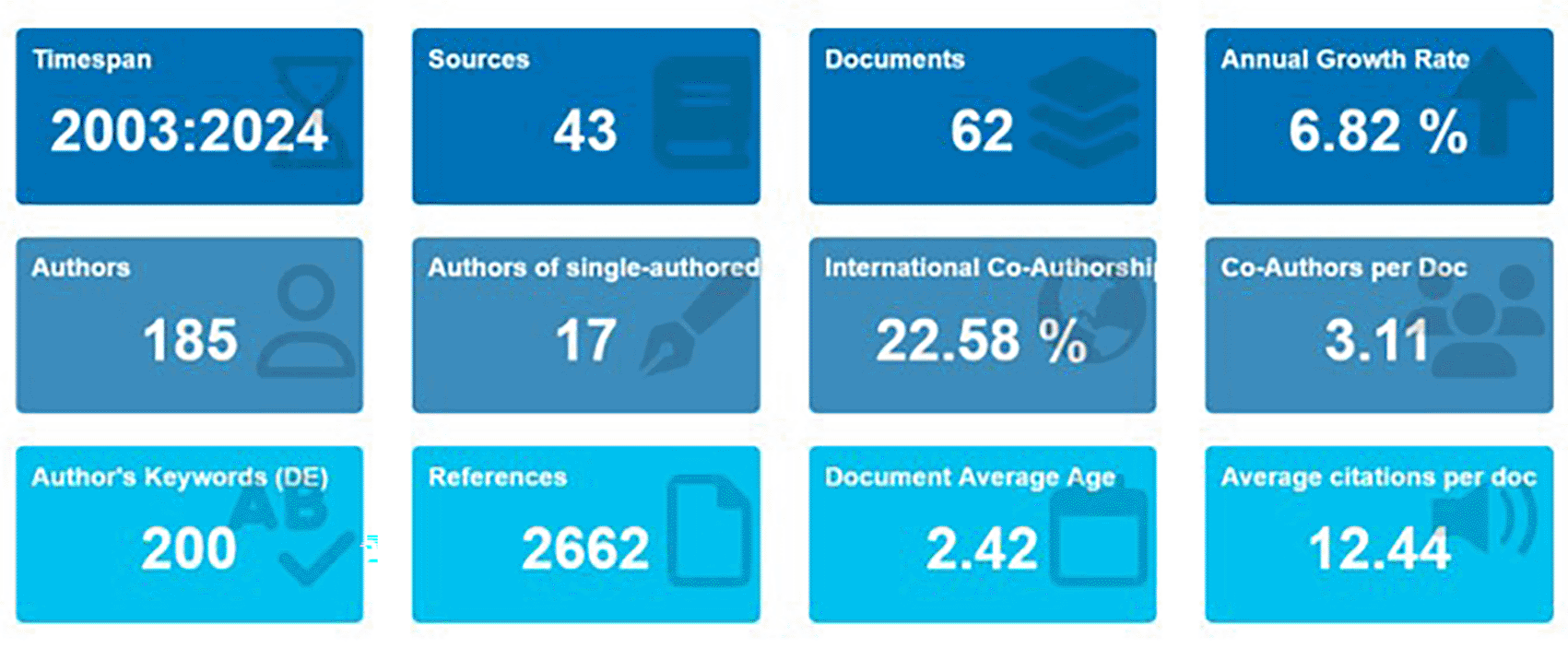 A total of 62 publications were looked at through a systematic review that included data mining, analytics, and bibliometric methods.