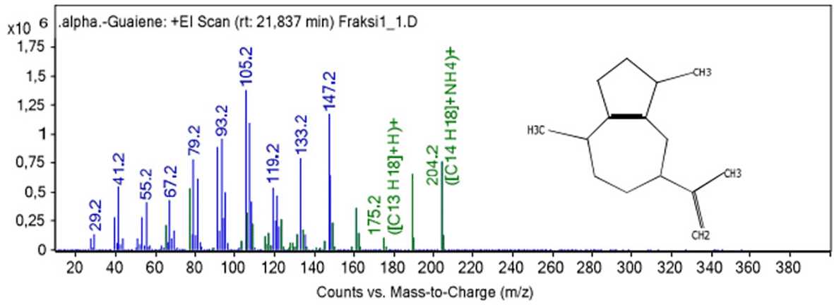 Figure 1 show fragmentation pattern of α-guaiene.